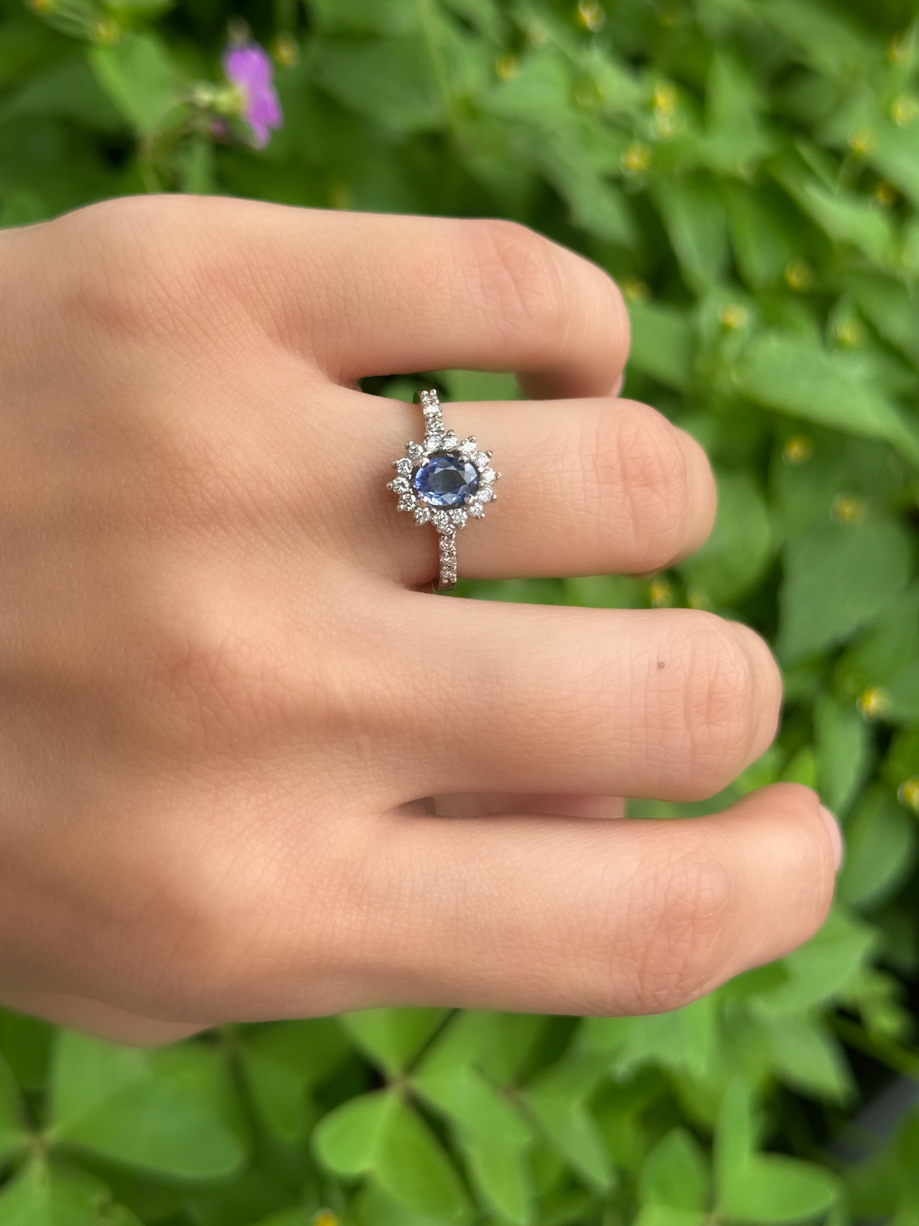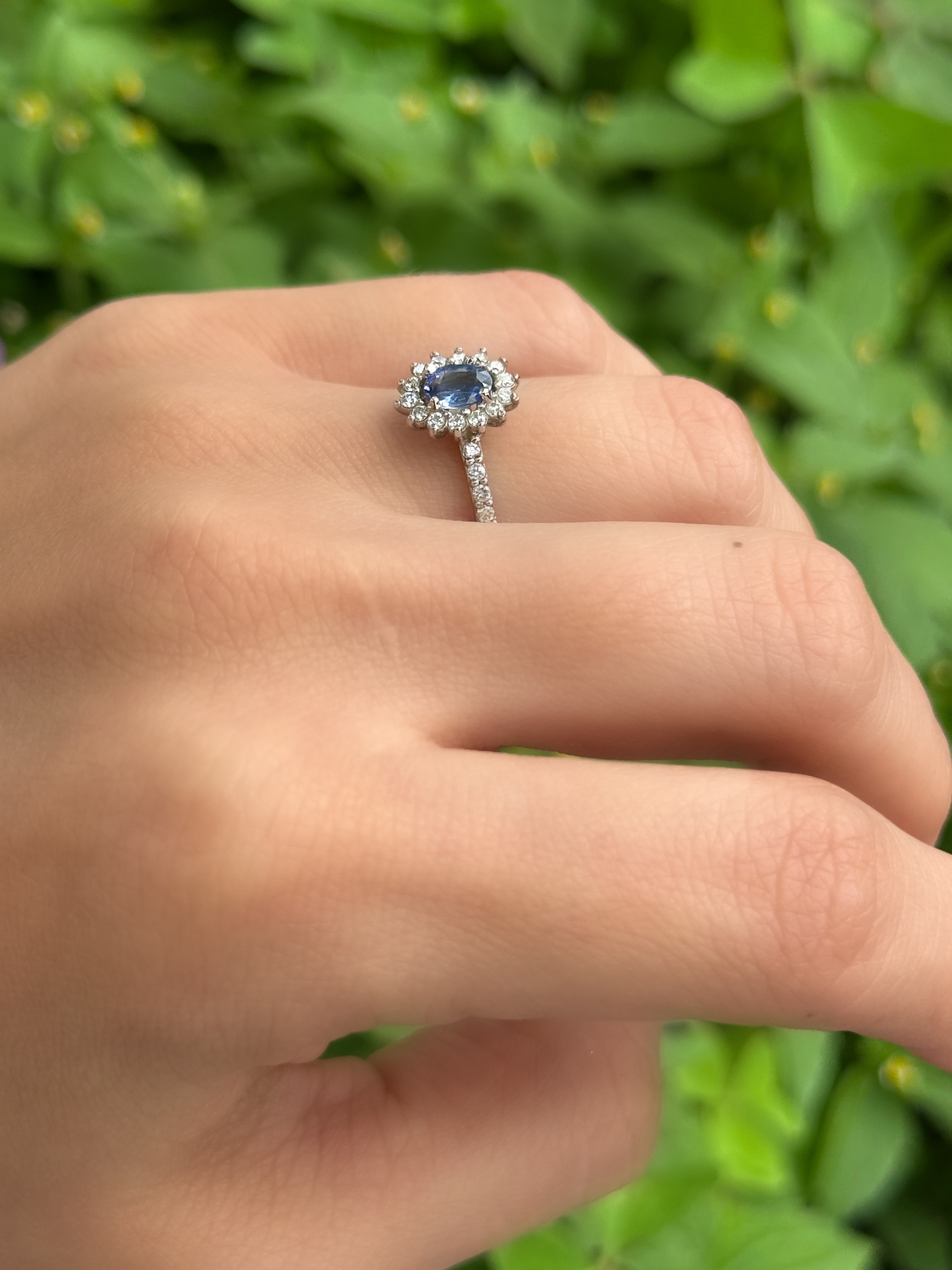 Anillo Lady Di Zafiro Azul diamantes en argolla