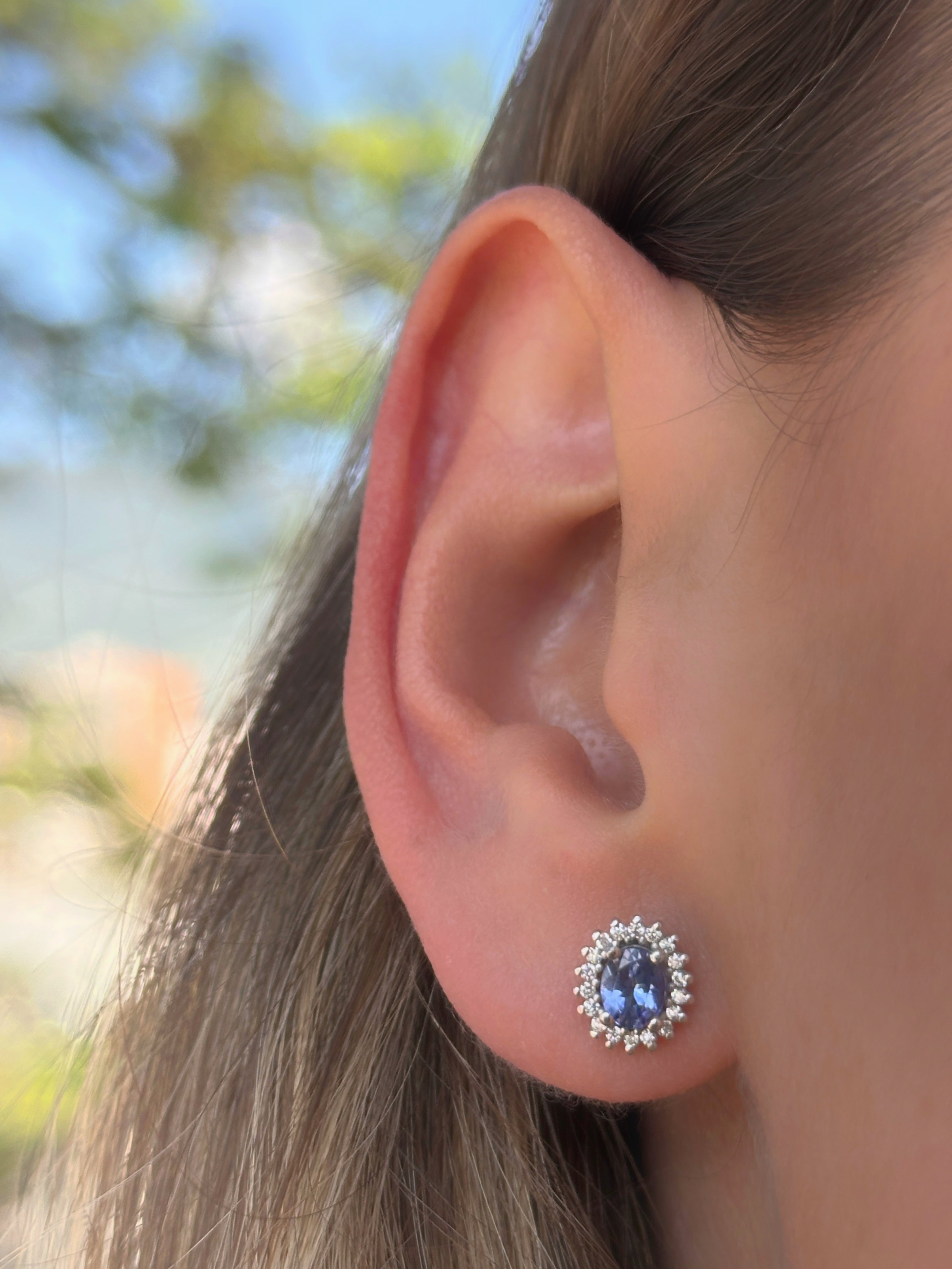 Aretes Flora topacio london blue 5mm y esmeraldas
