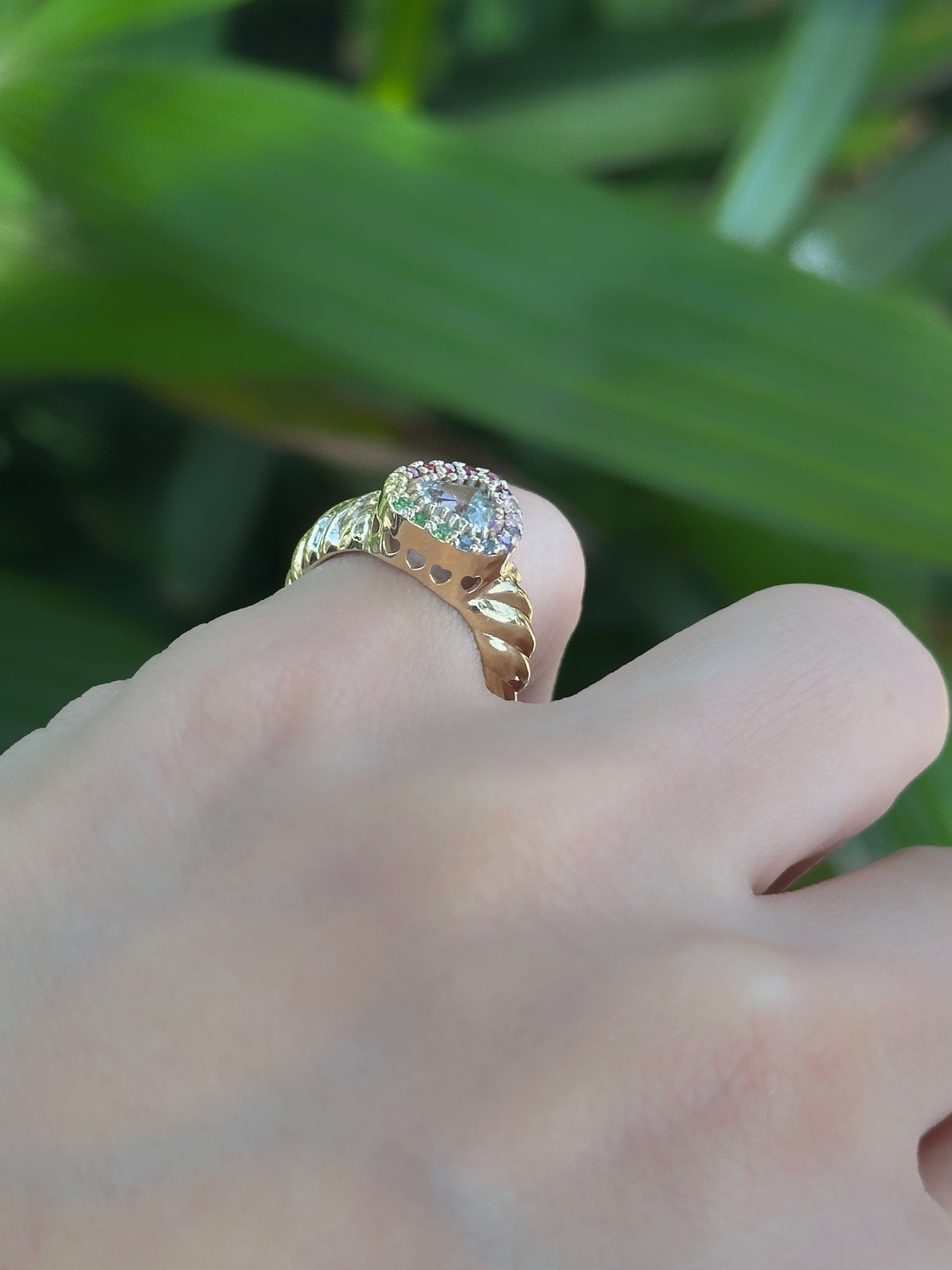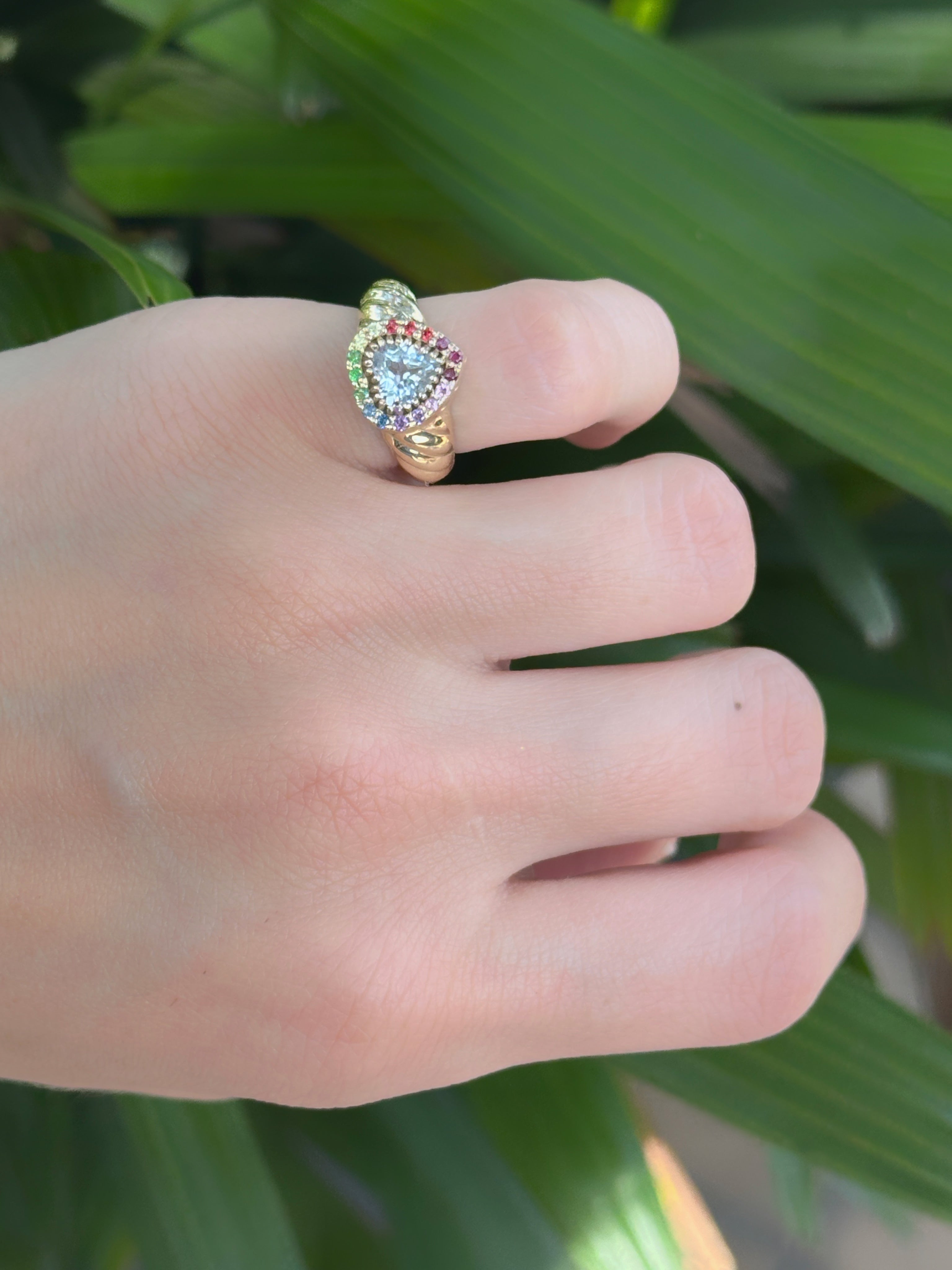 Anillo Topacio london blue cluster Esmeraldas pequeño