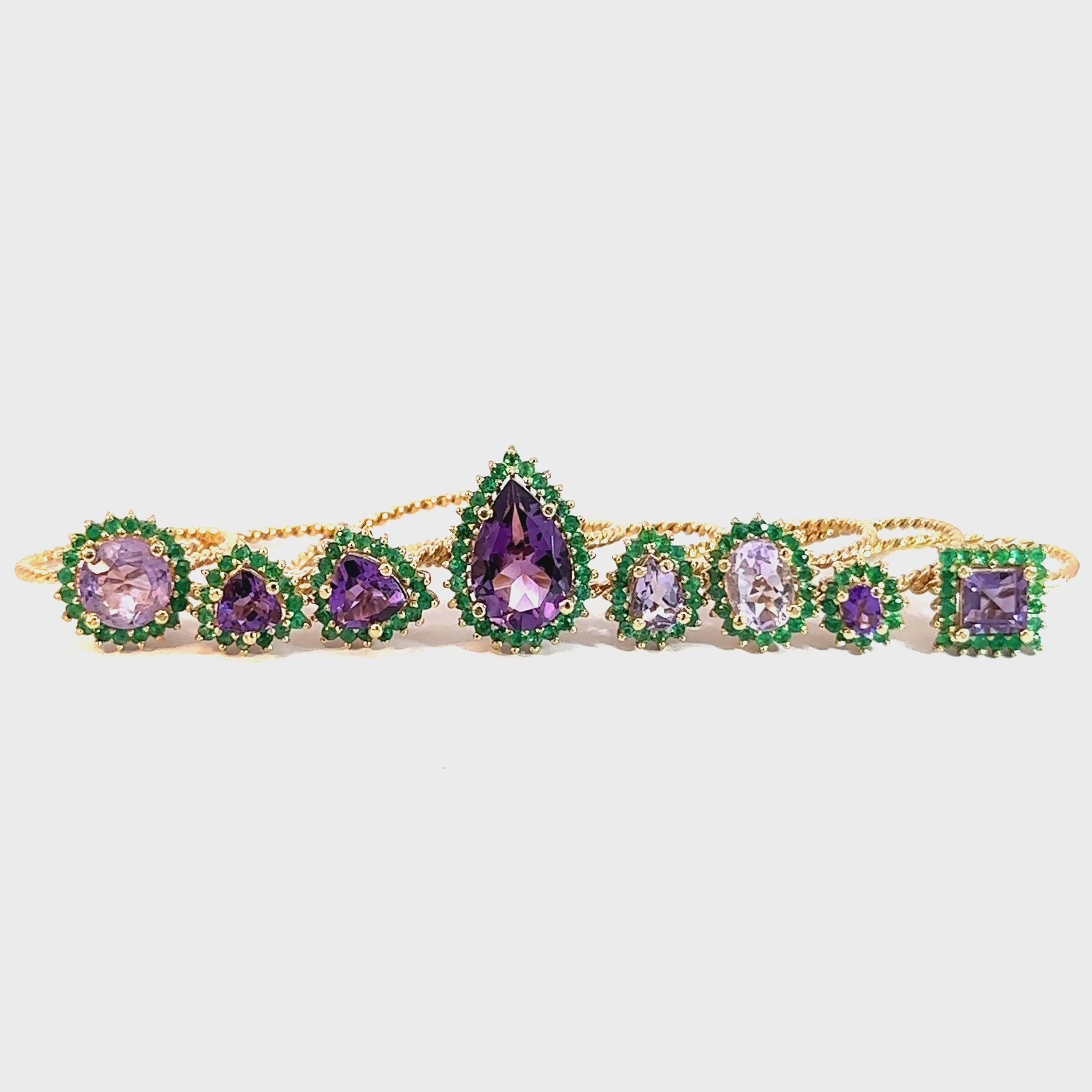 Flora 5mm lavanda de diámetro aprox. 0,49 cts. Esmeraldas 0,16cts talla 5.5