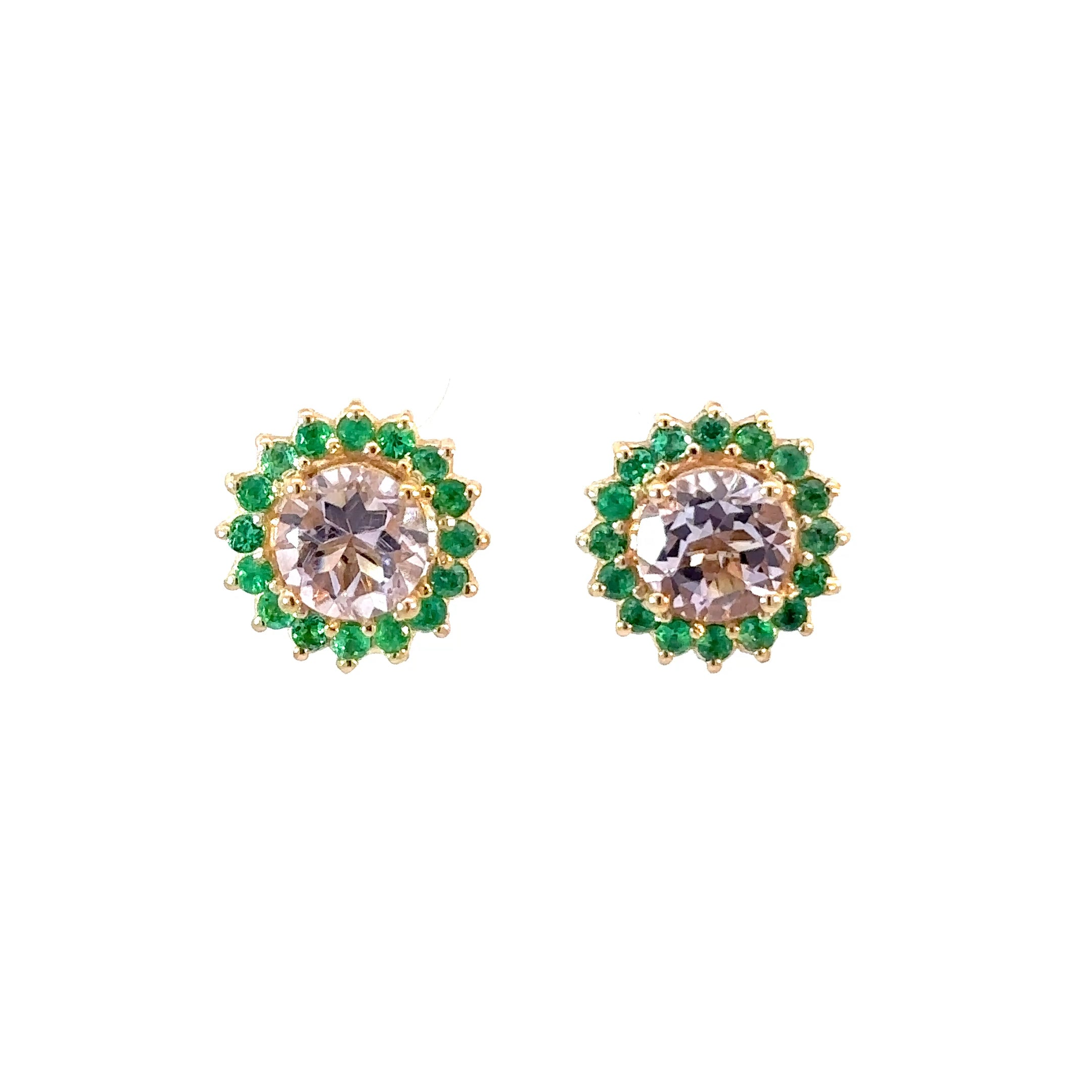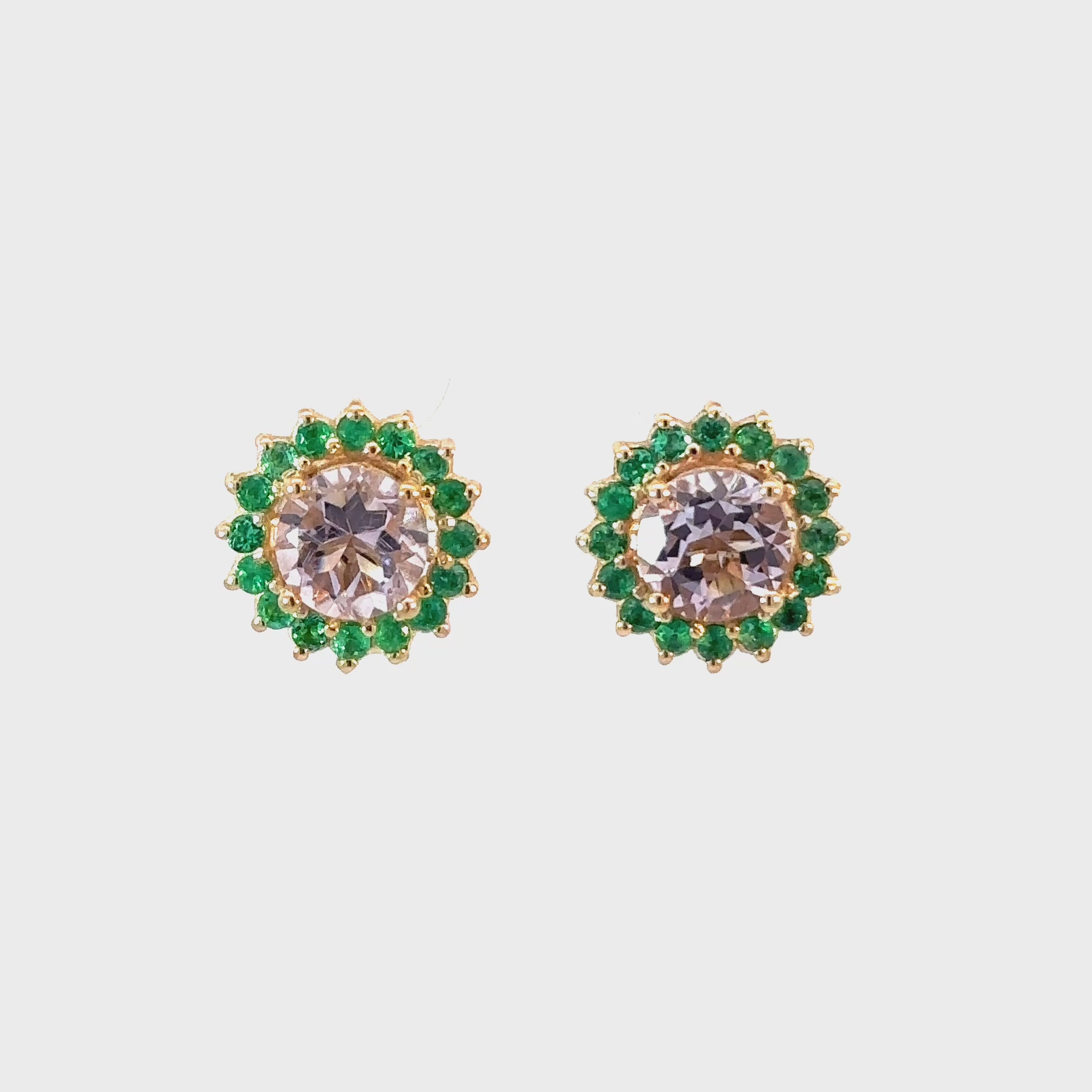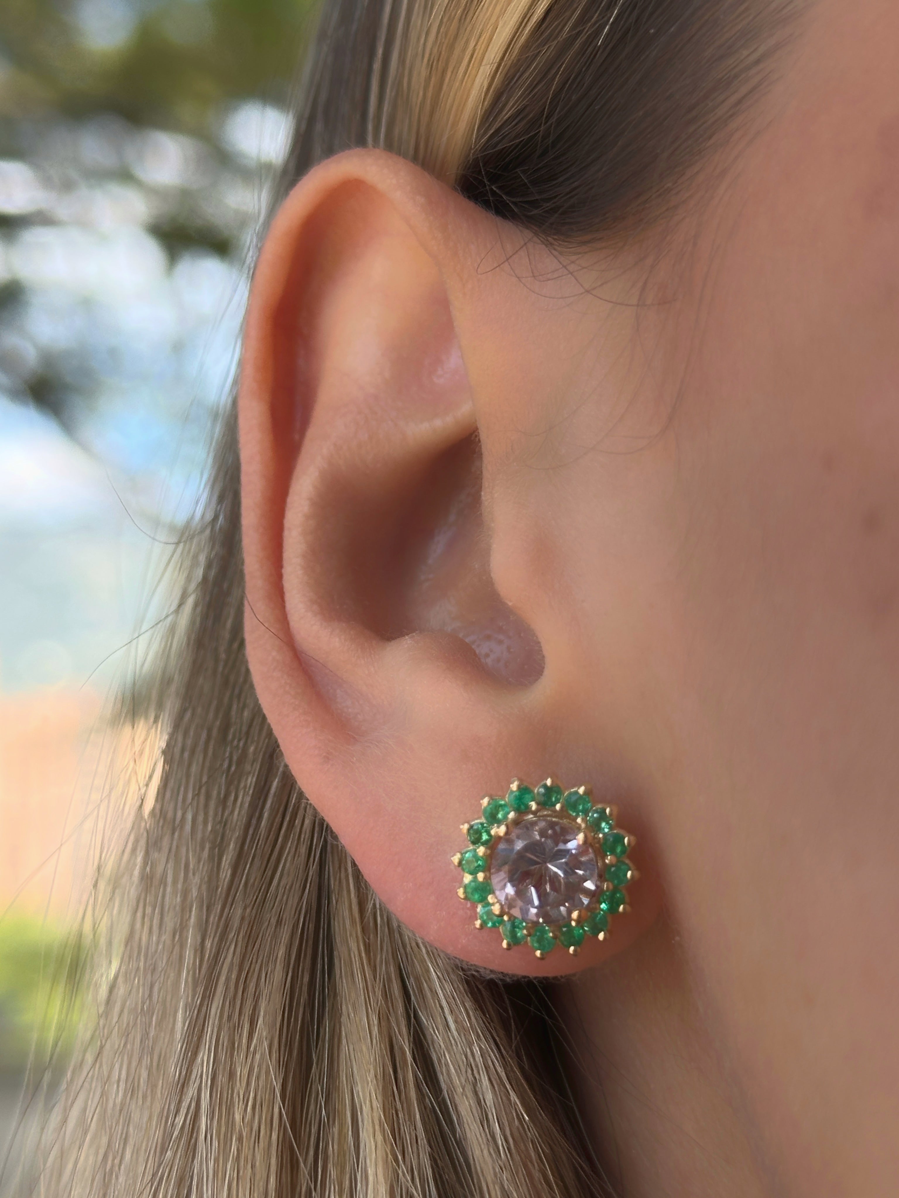 Aretes Flora grandes amatista lavanda y esmeraldas