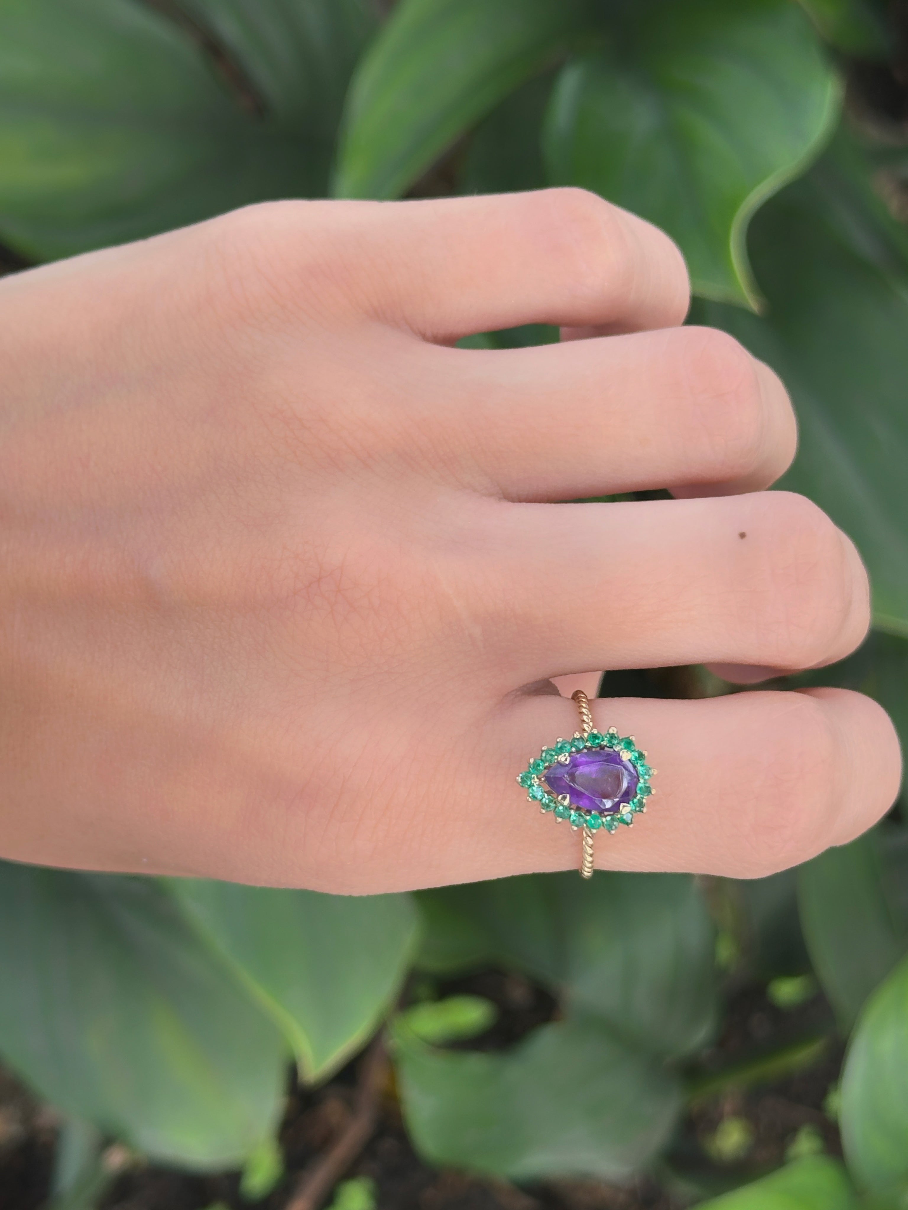 Anillo Signature baby esmeralda 7 mm y diamantes