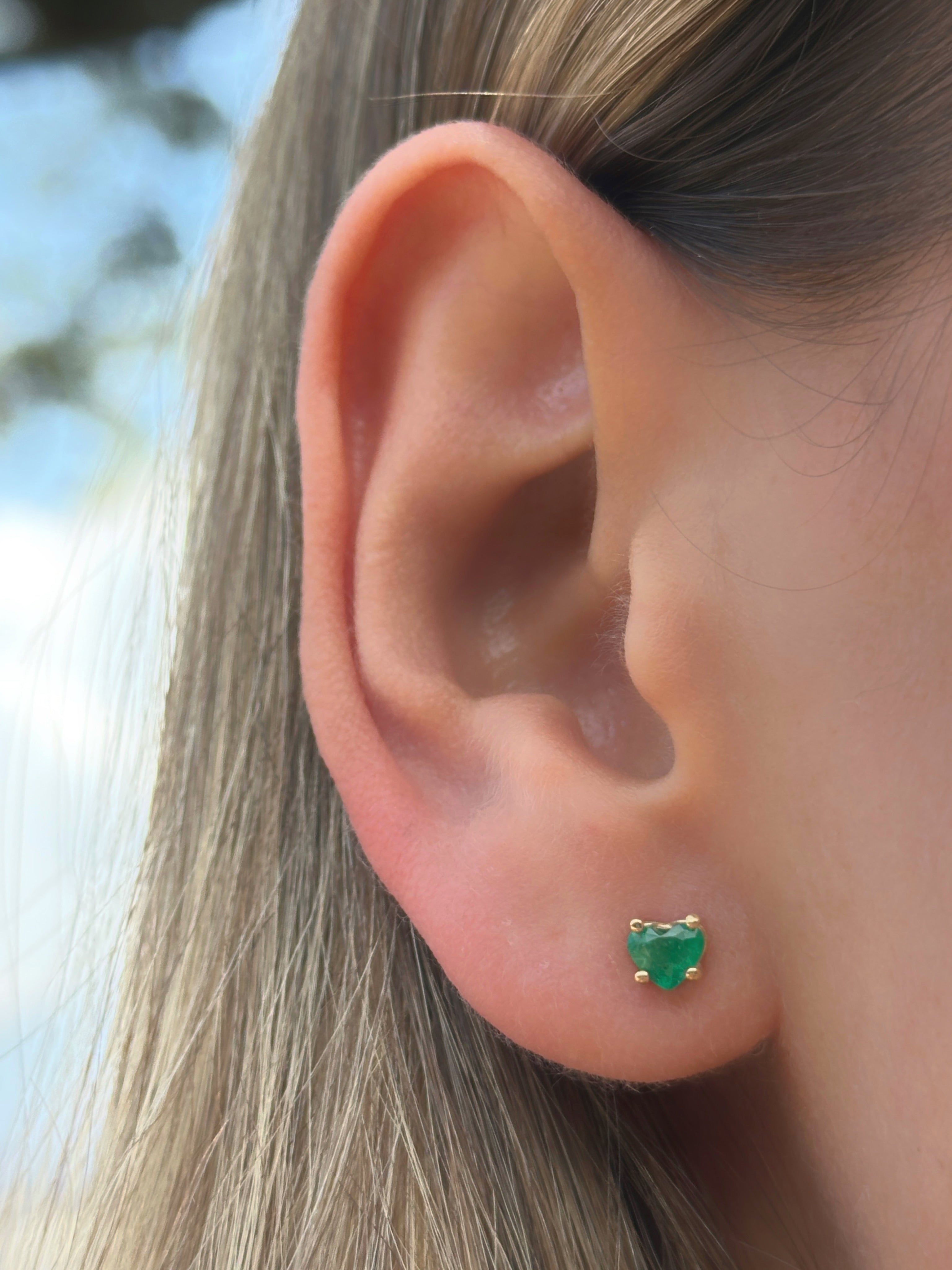 Aretes esmeralda corazón 0,50 cts - Oro amarillo