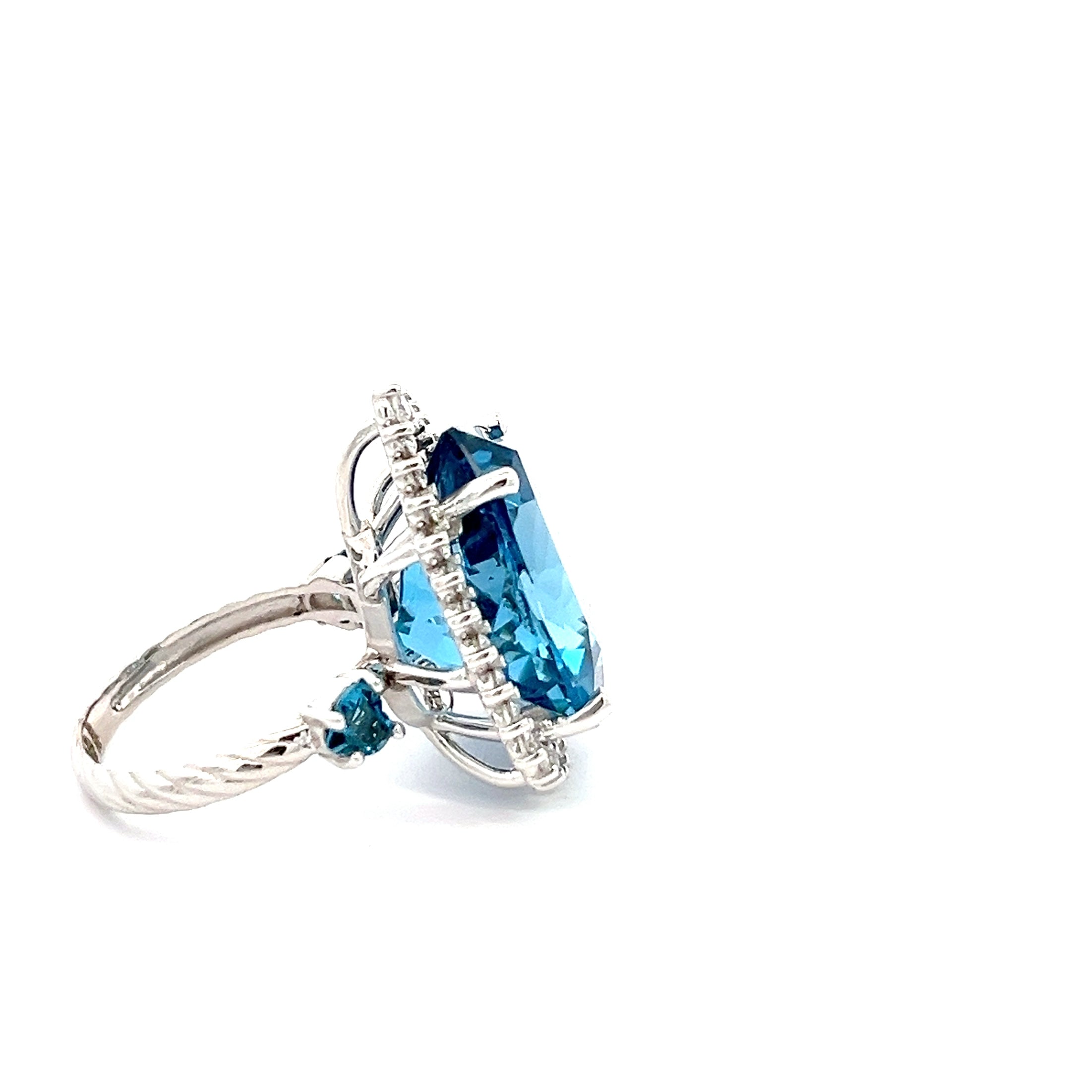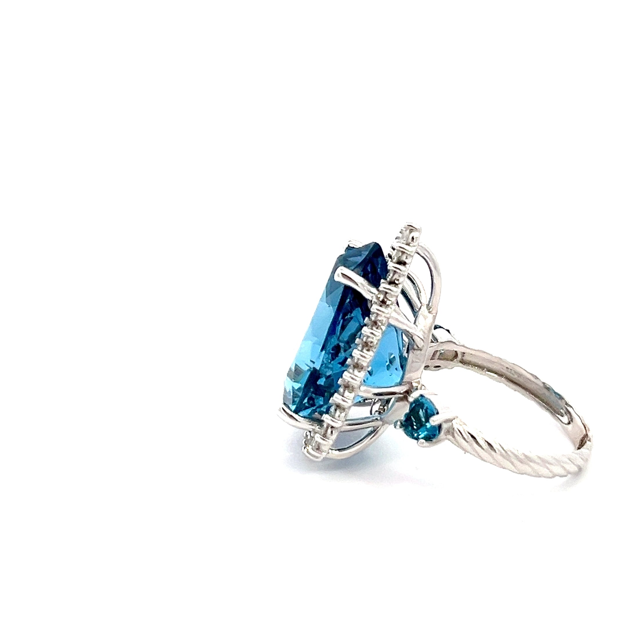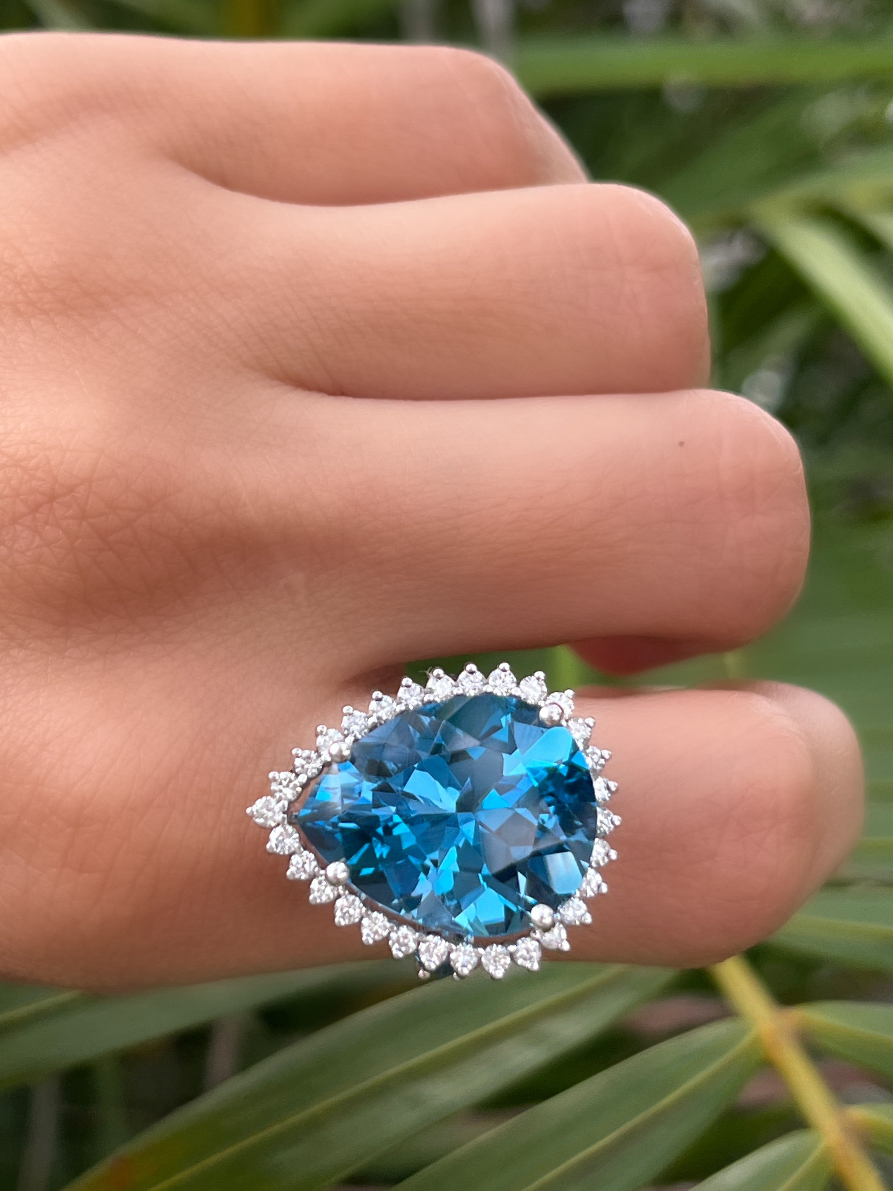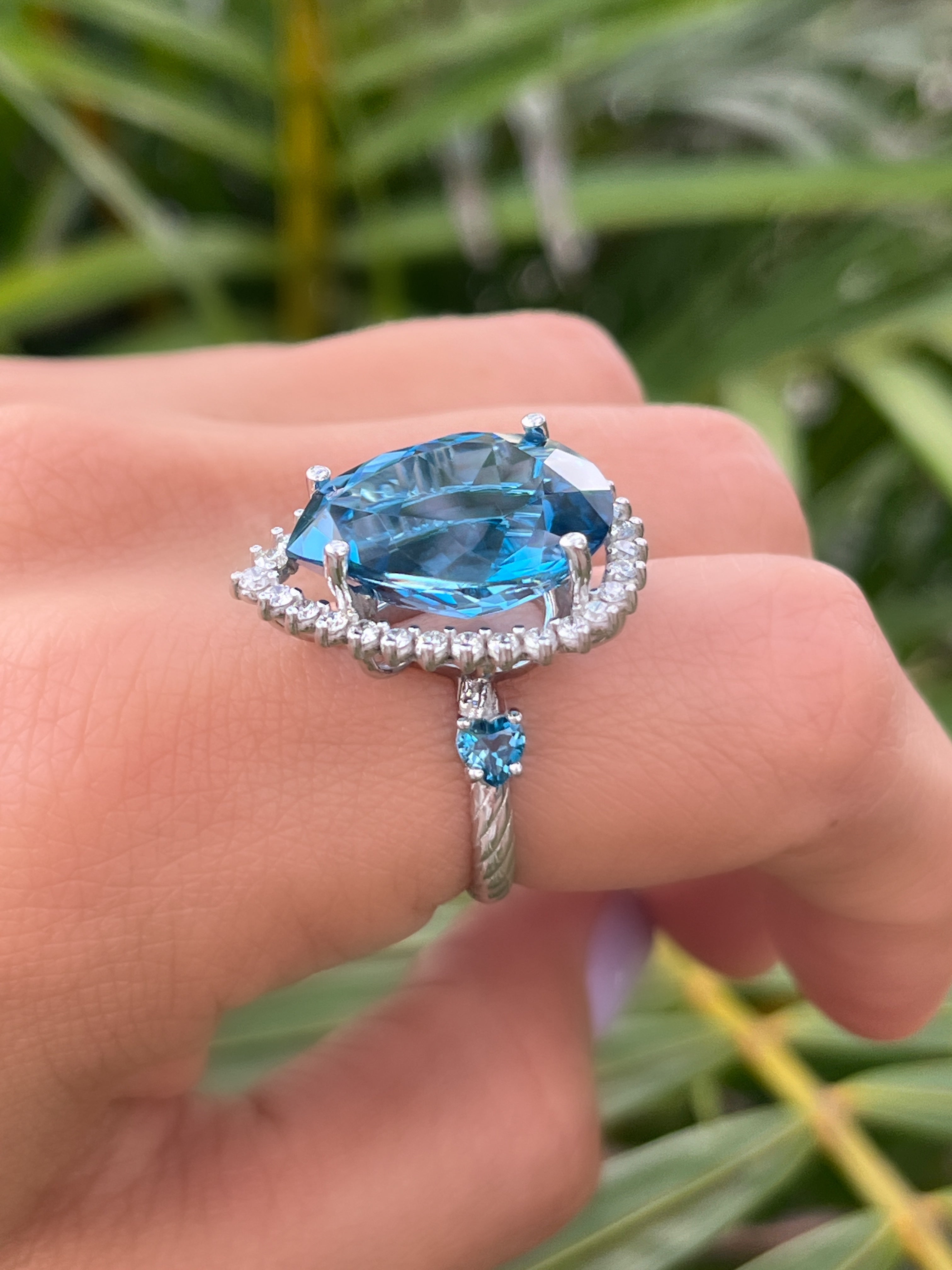 Anillo Hindi Topacio london blue y diamantes