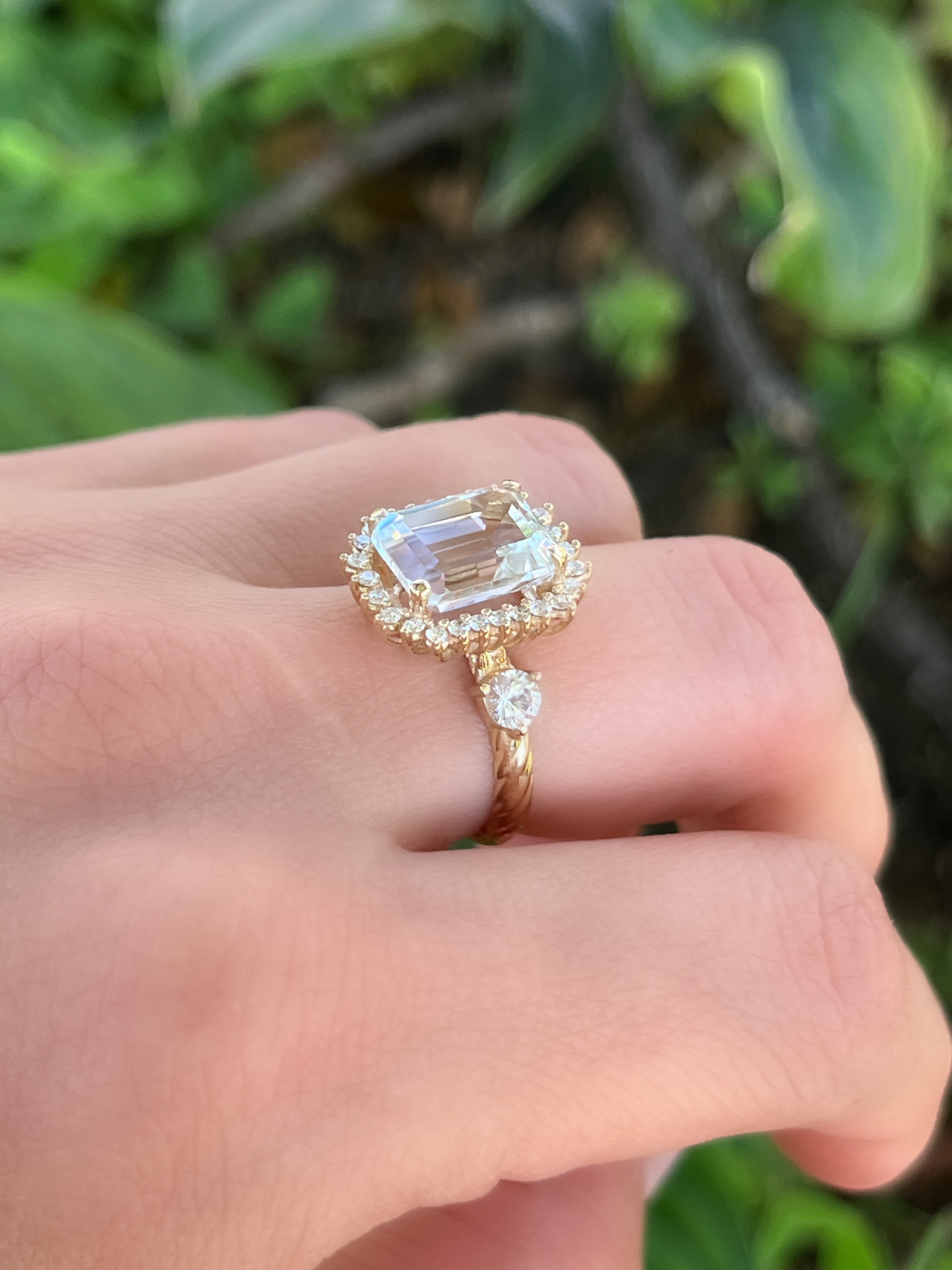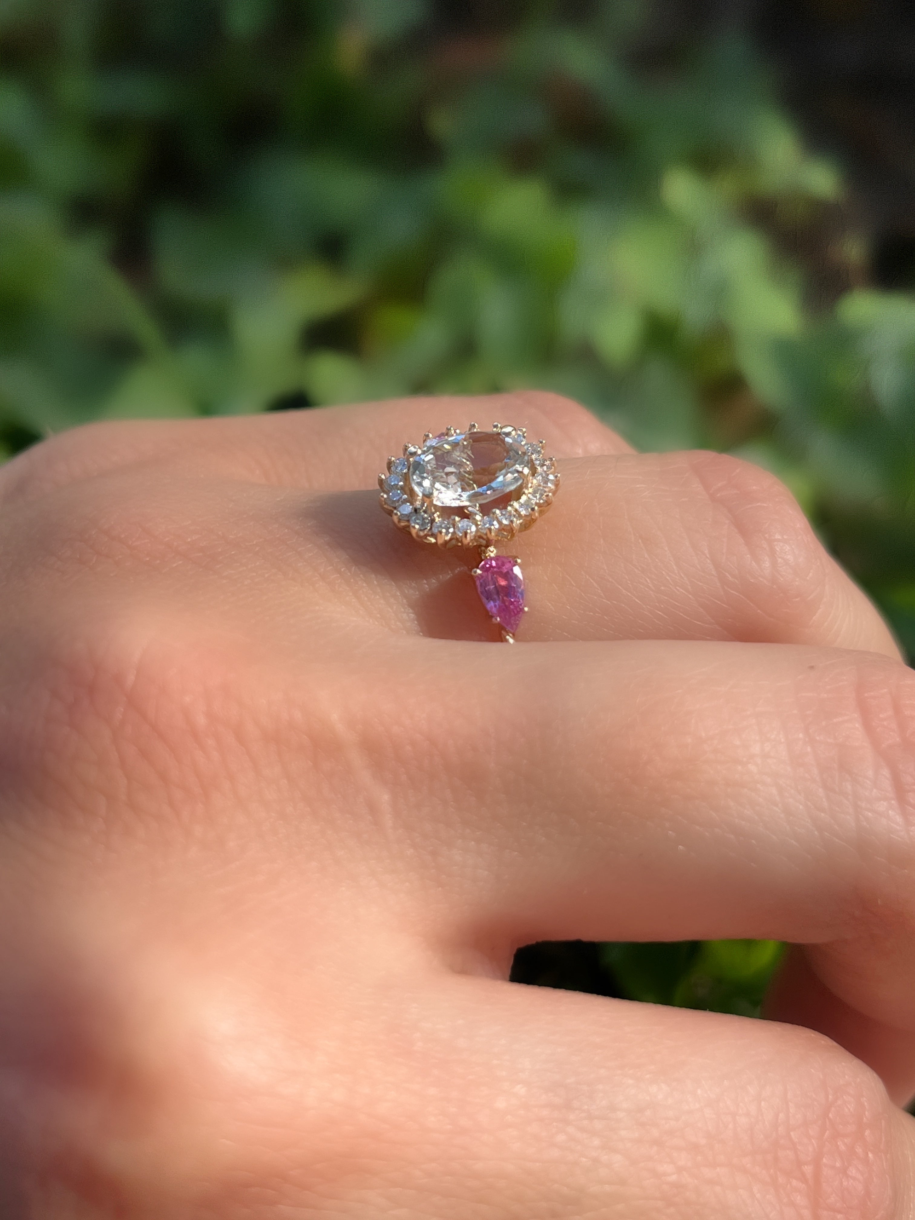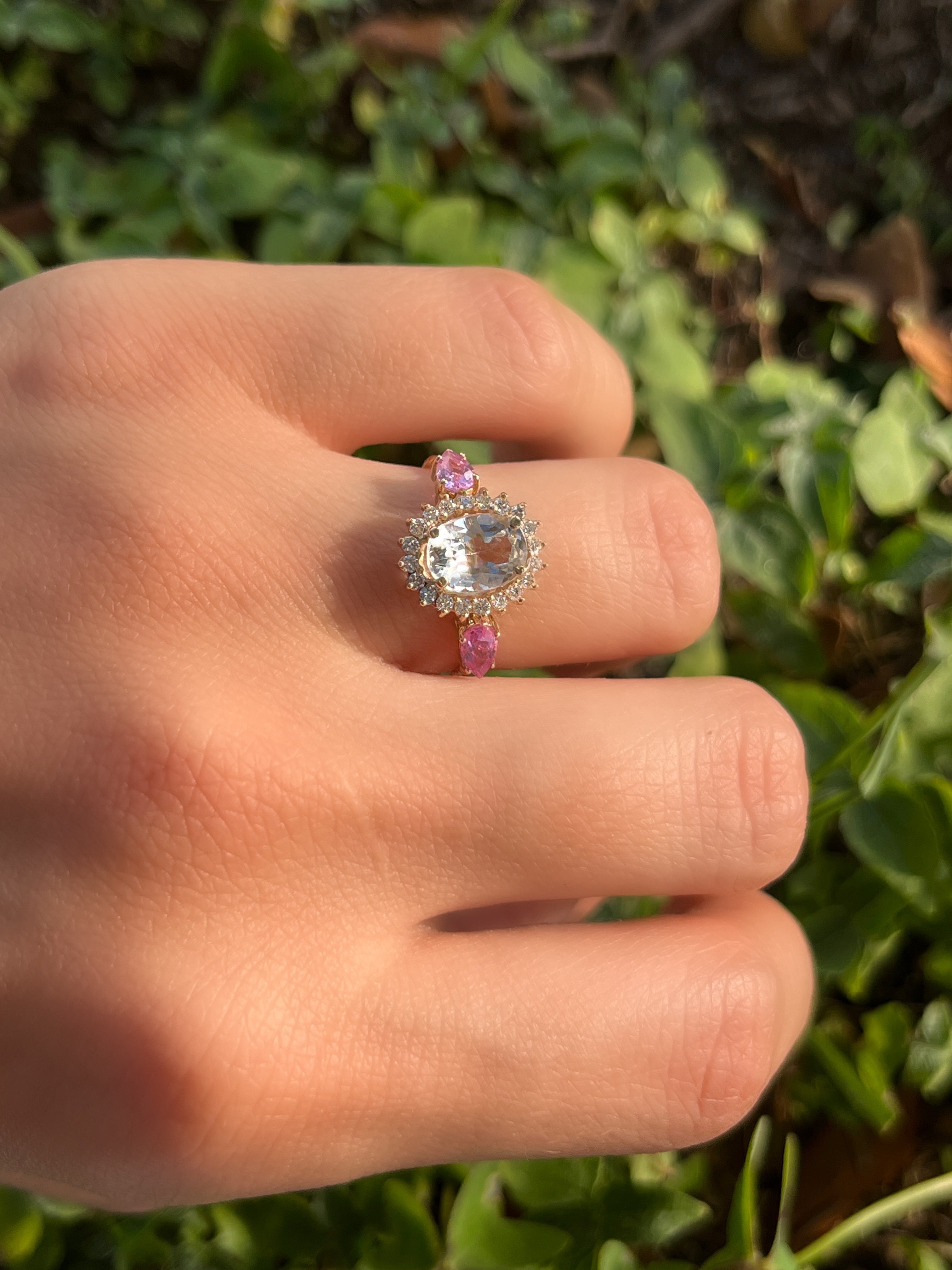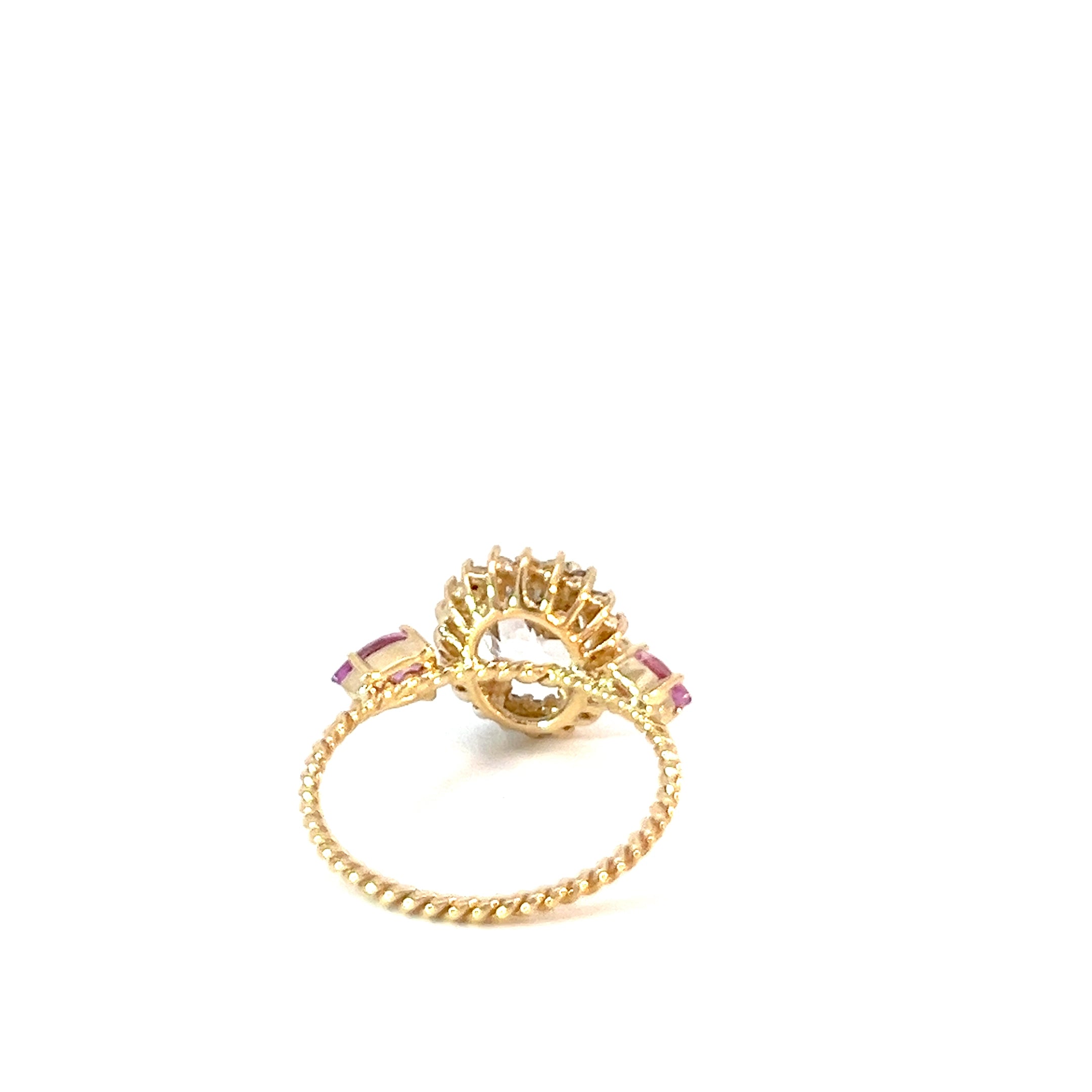 Anillo Antoniette Topacio blanco con zafiros rosa y diamantes