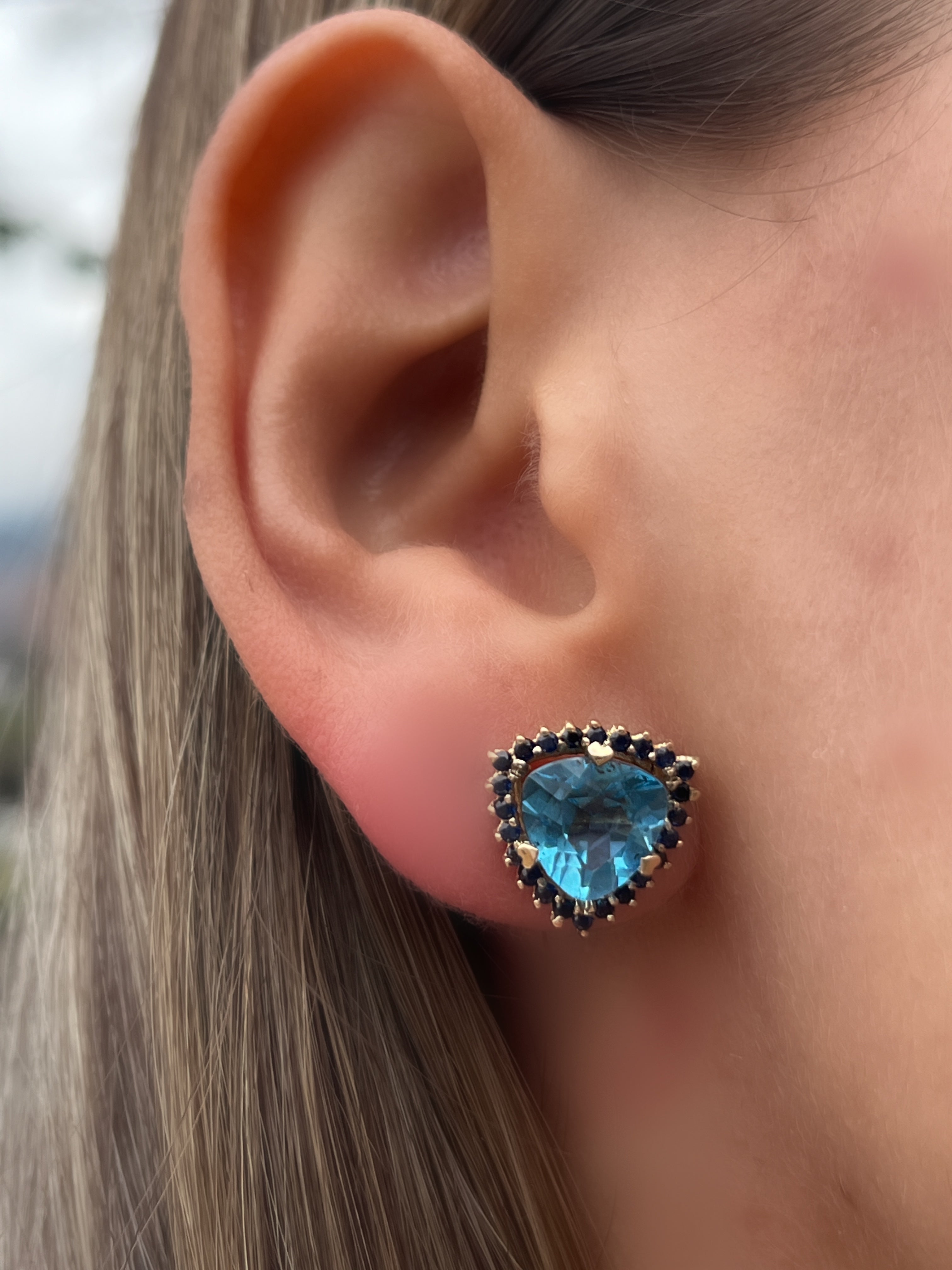 Aretes topacio Swiss blue Trillion y zafiros azules