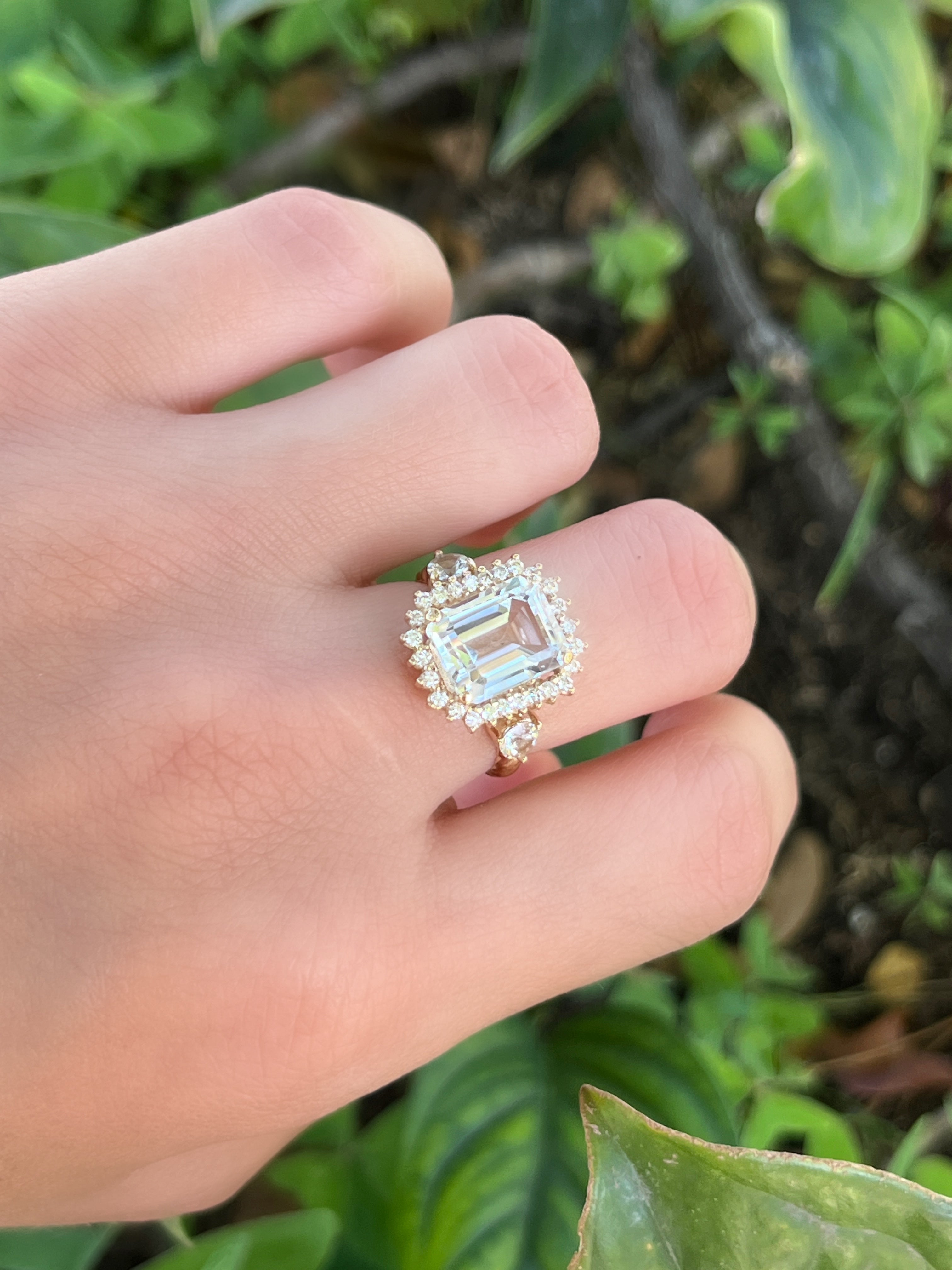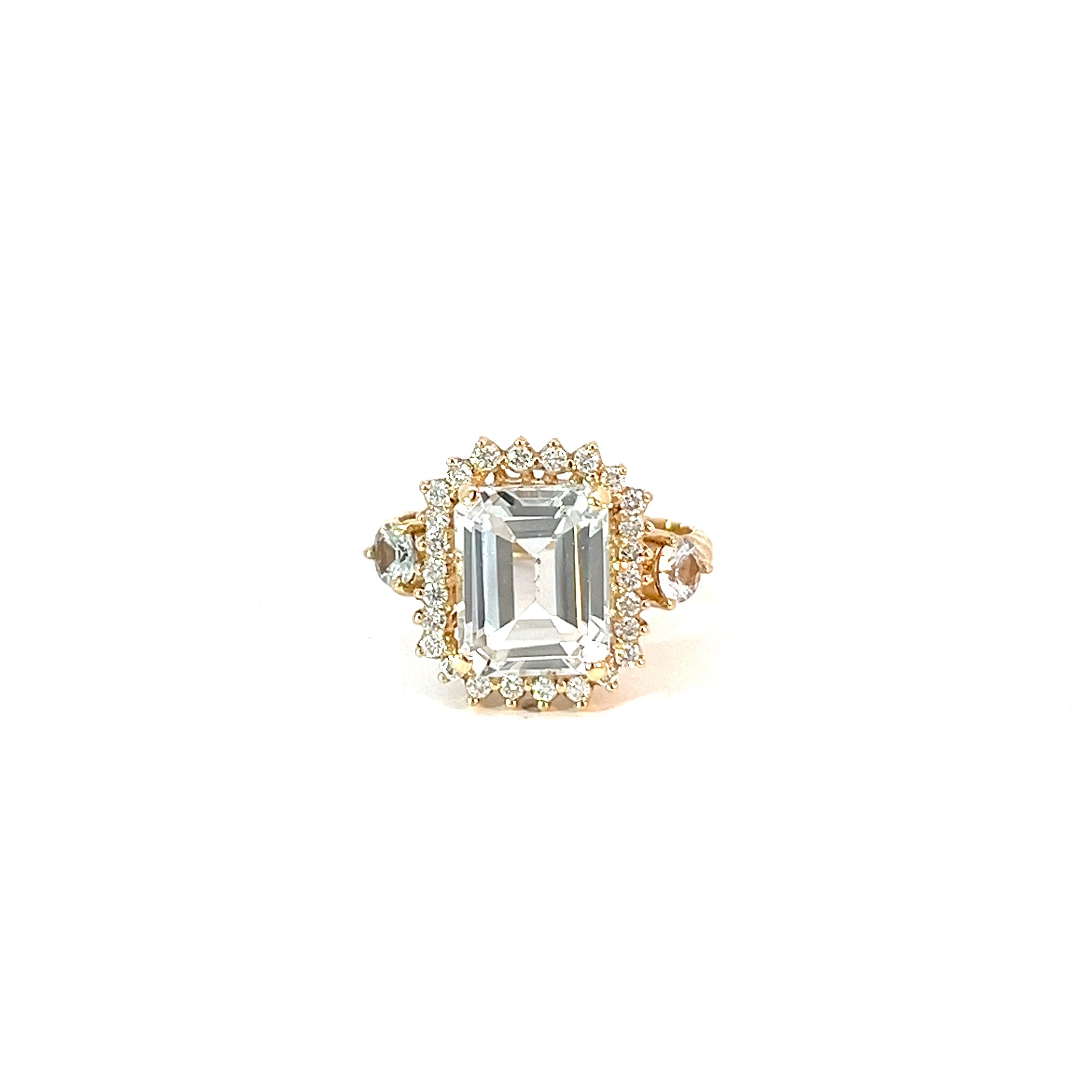 Anillo cluster Topacio blanco con zafiros blancos y diamantes