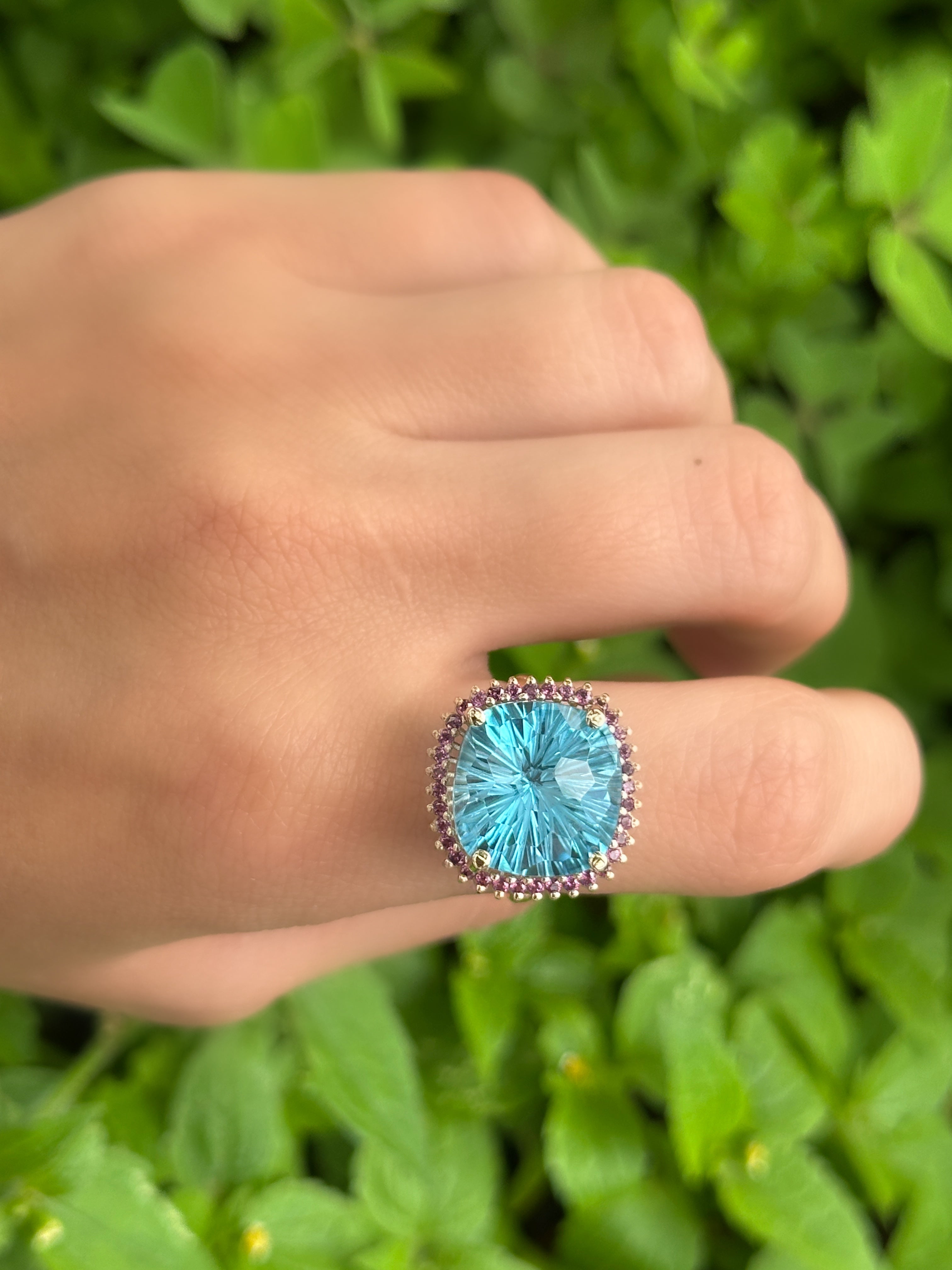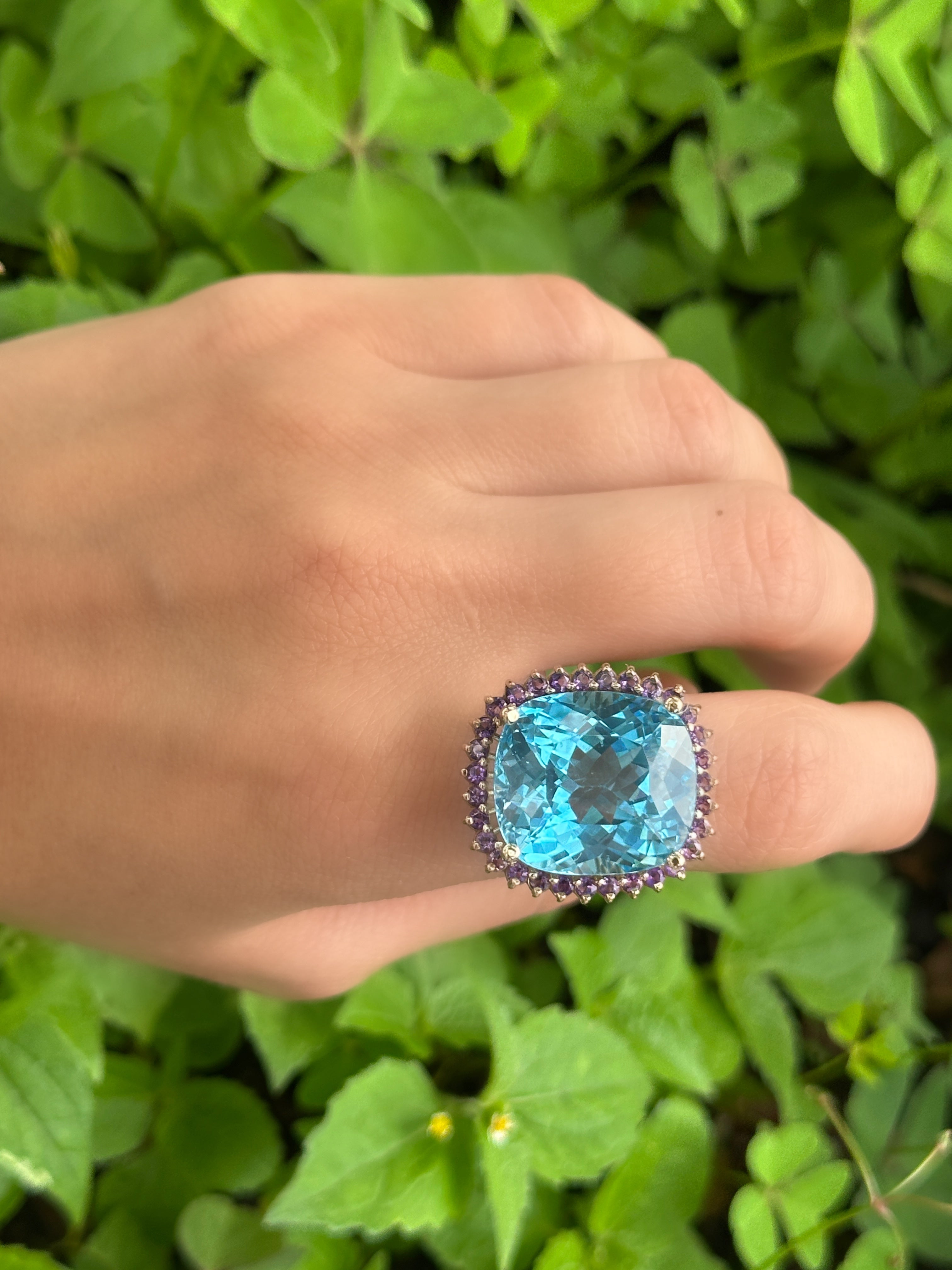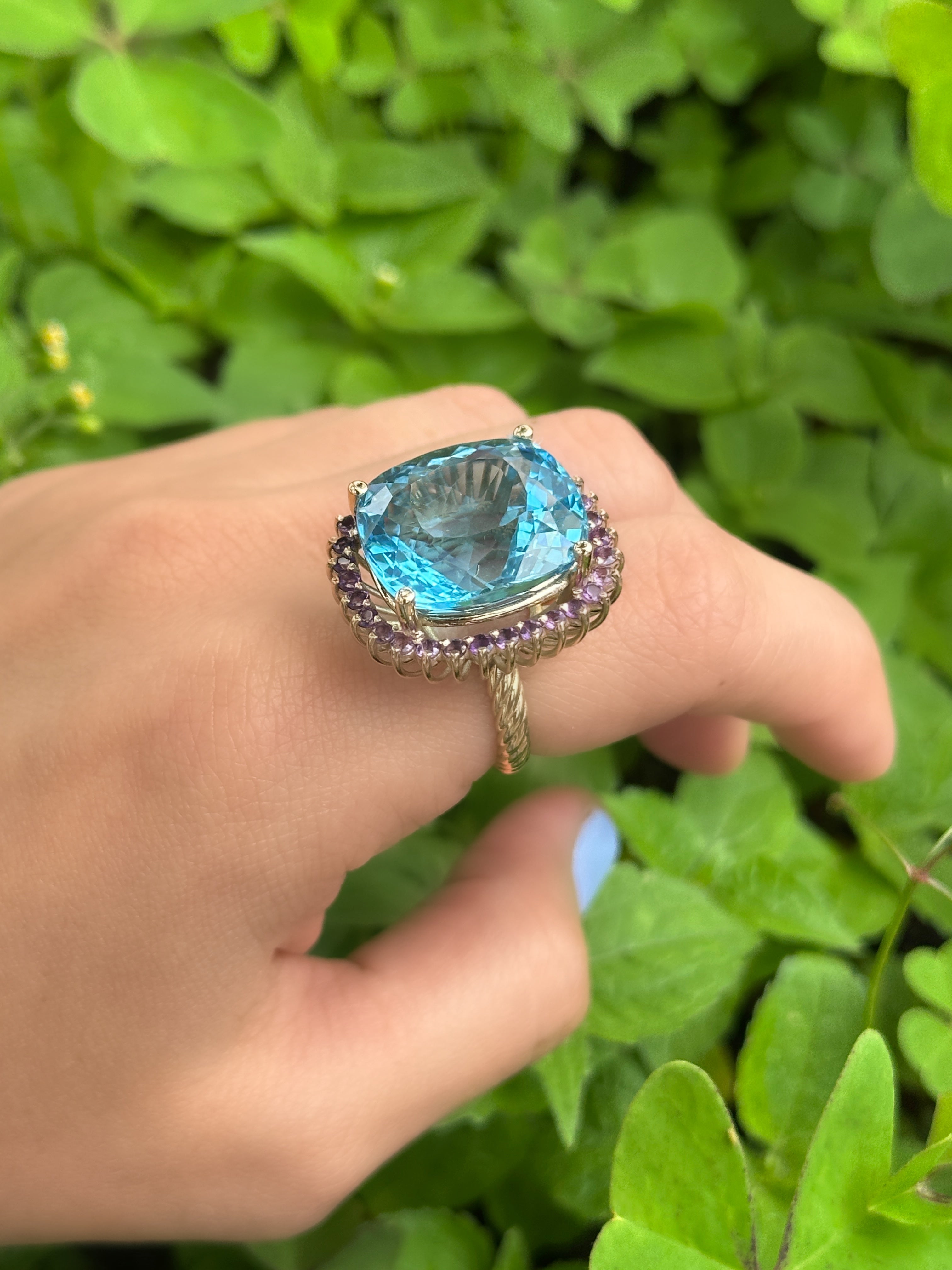 Anillo topacio swiss blue cluster amatistas