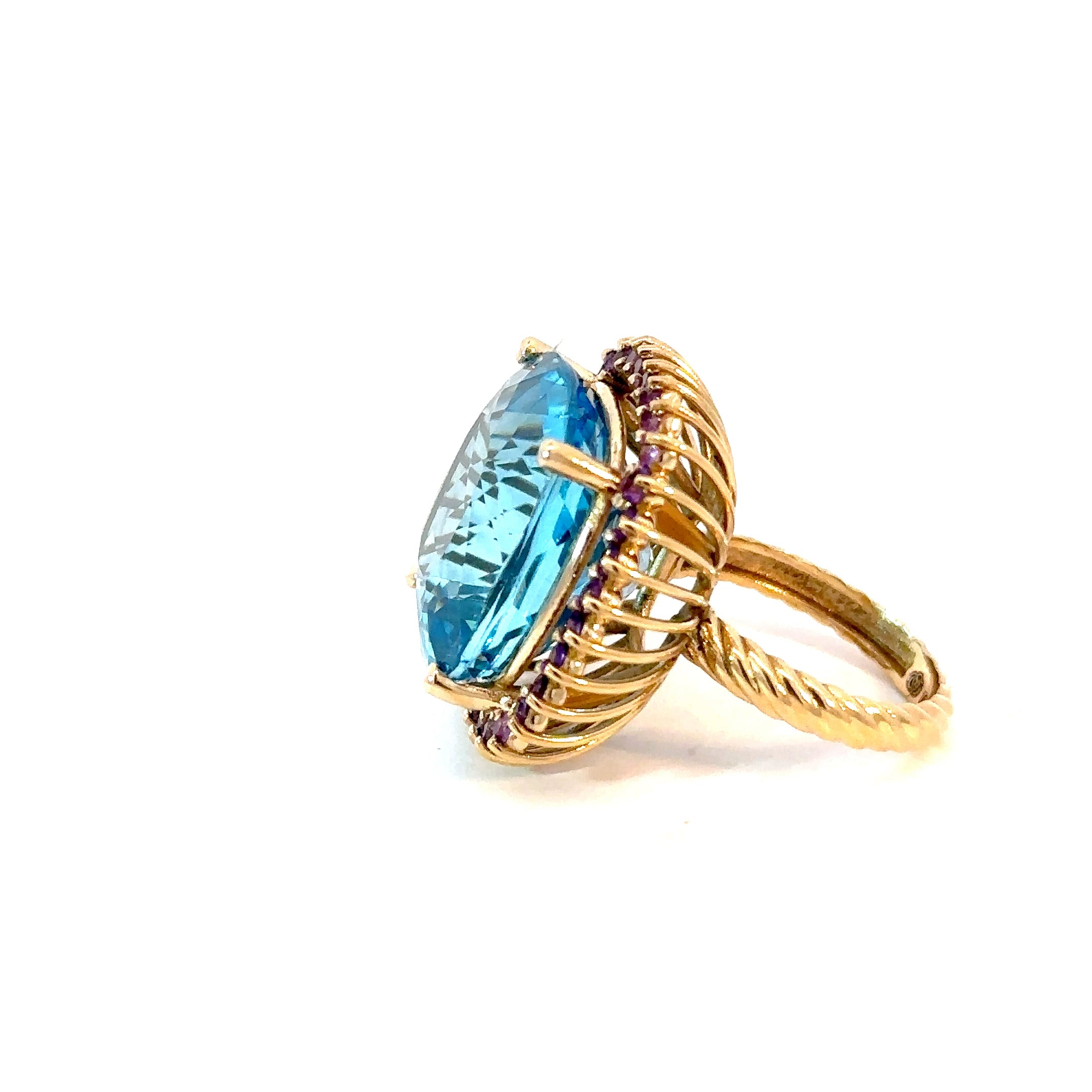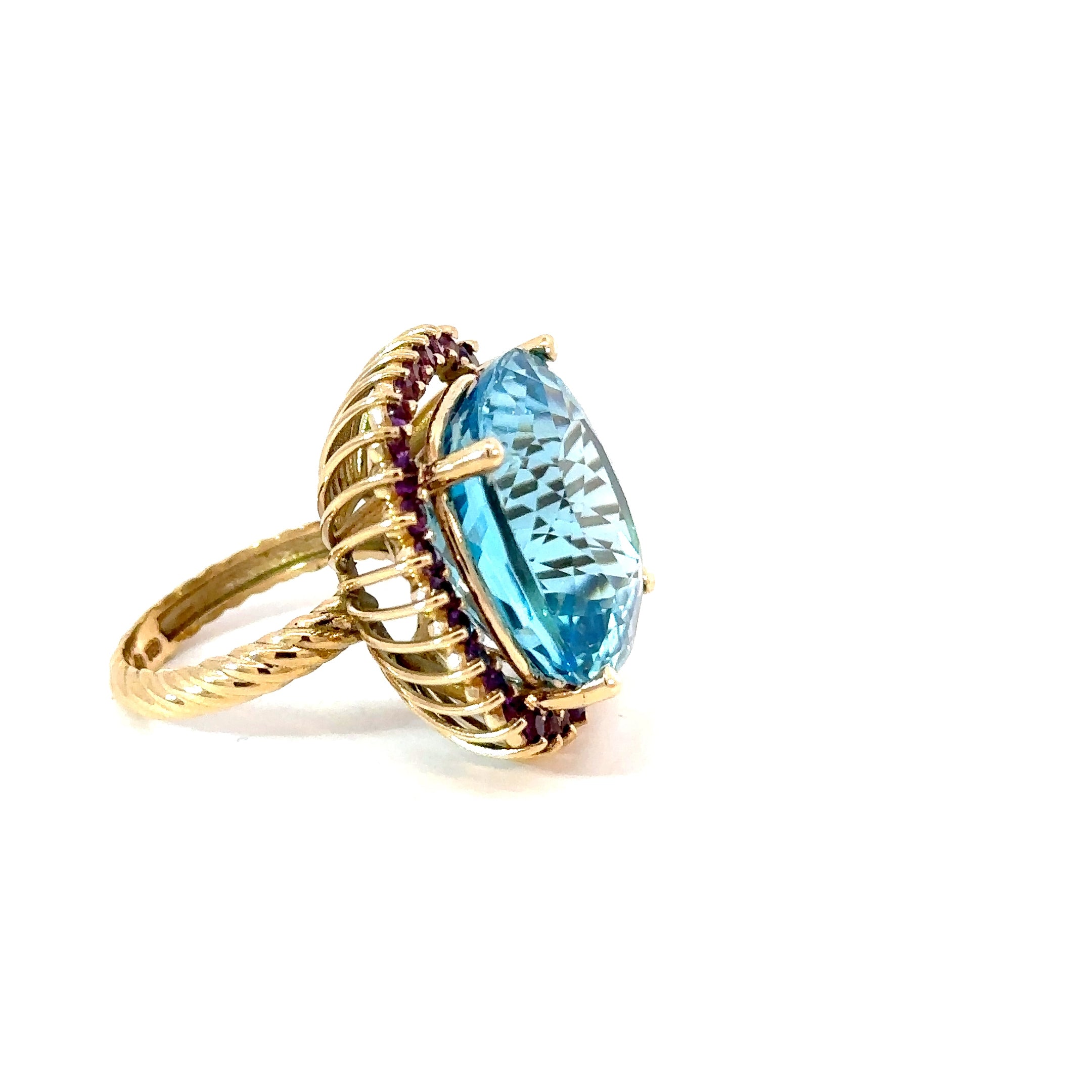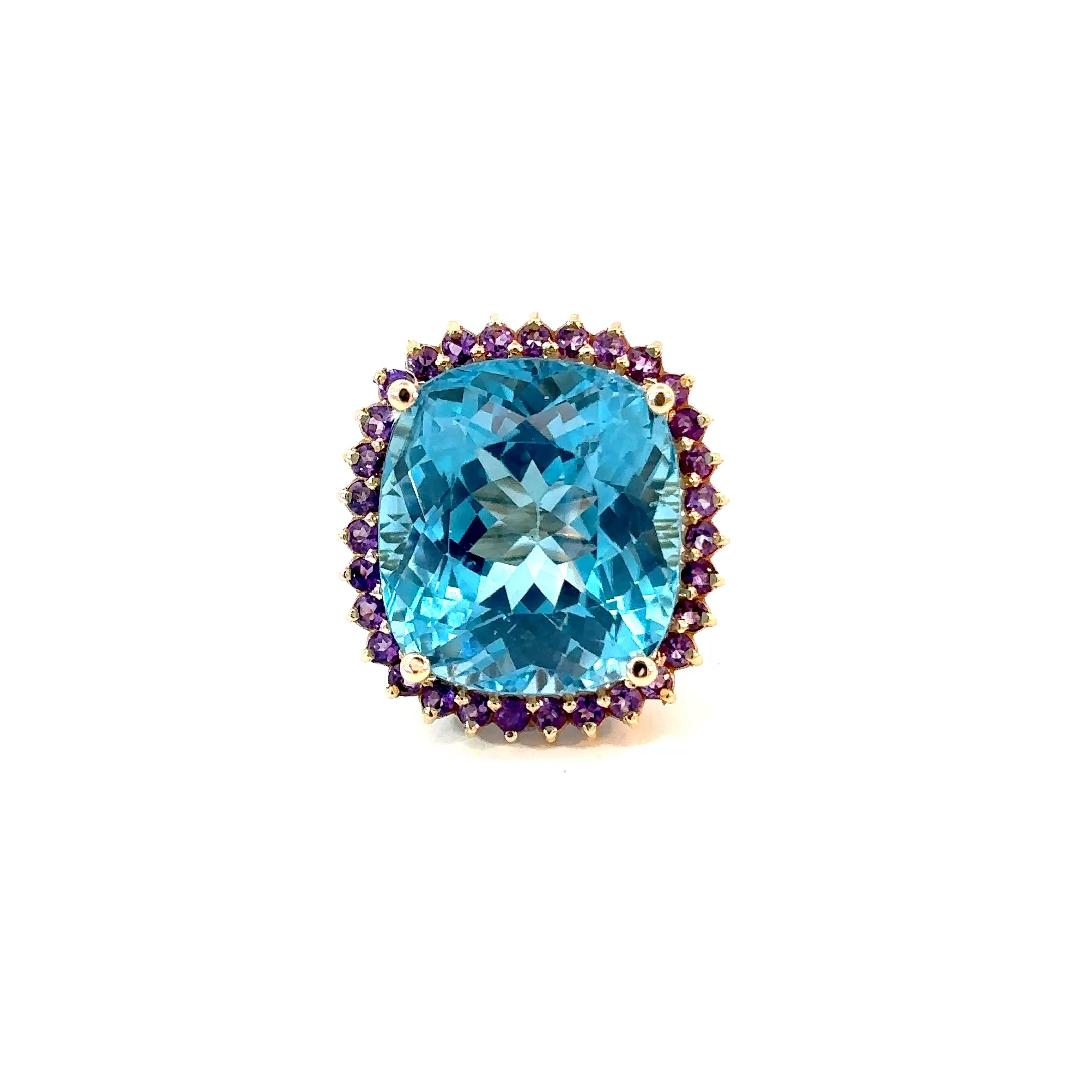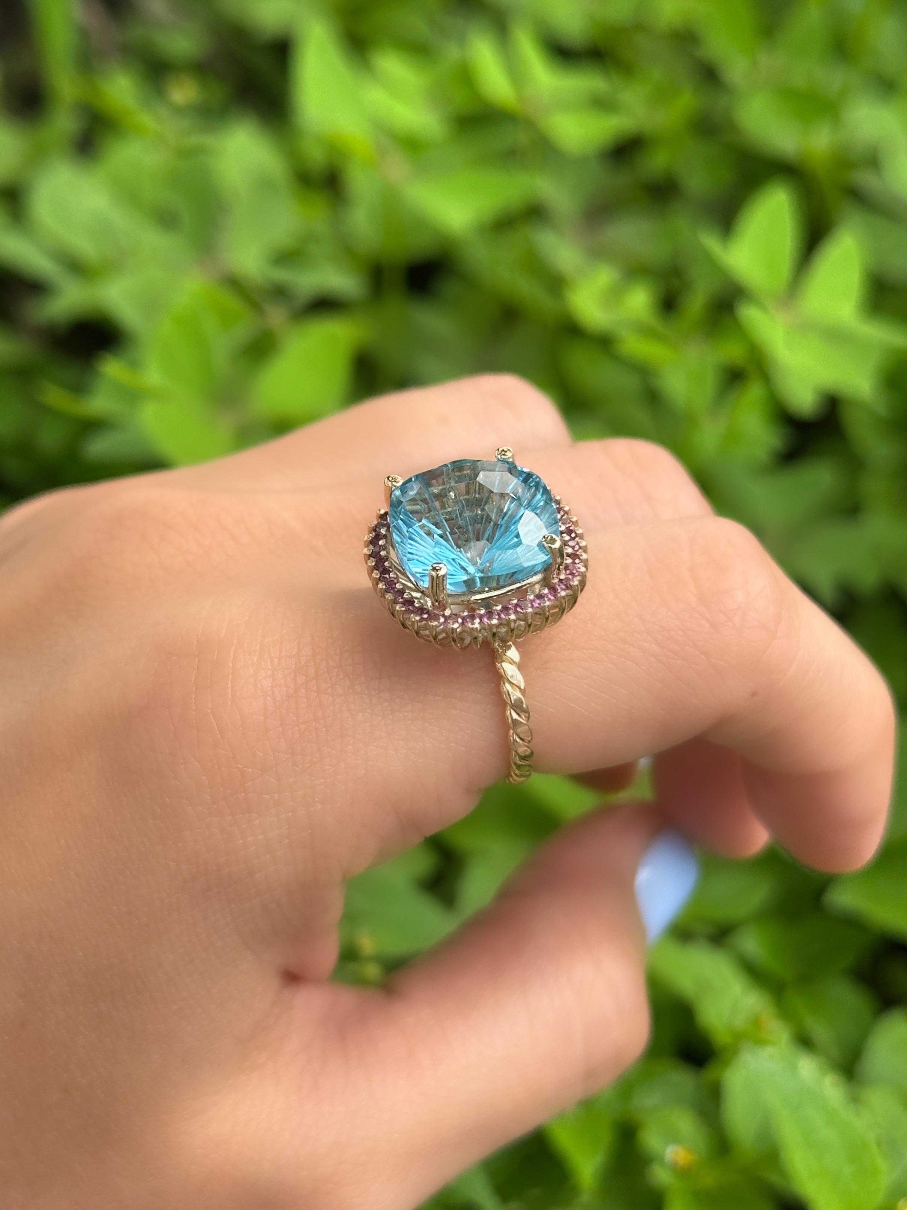 Anillo topacio swiss blue cluster amatistas