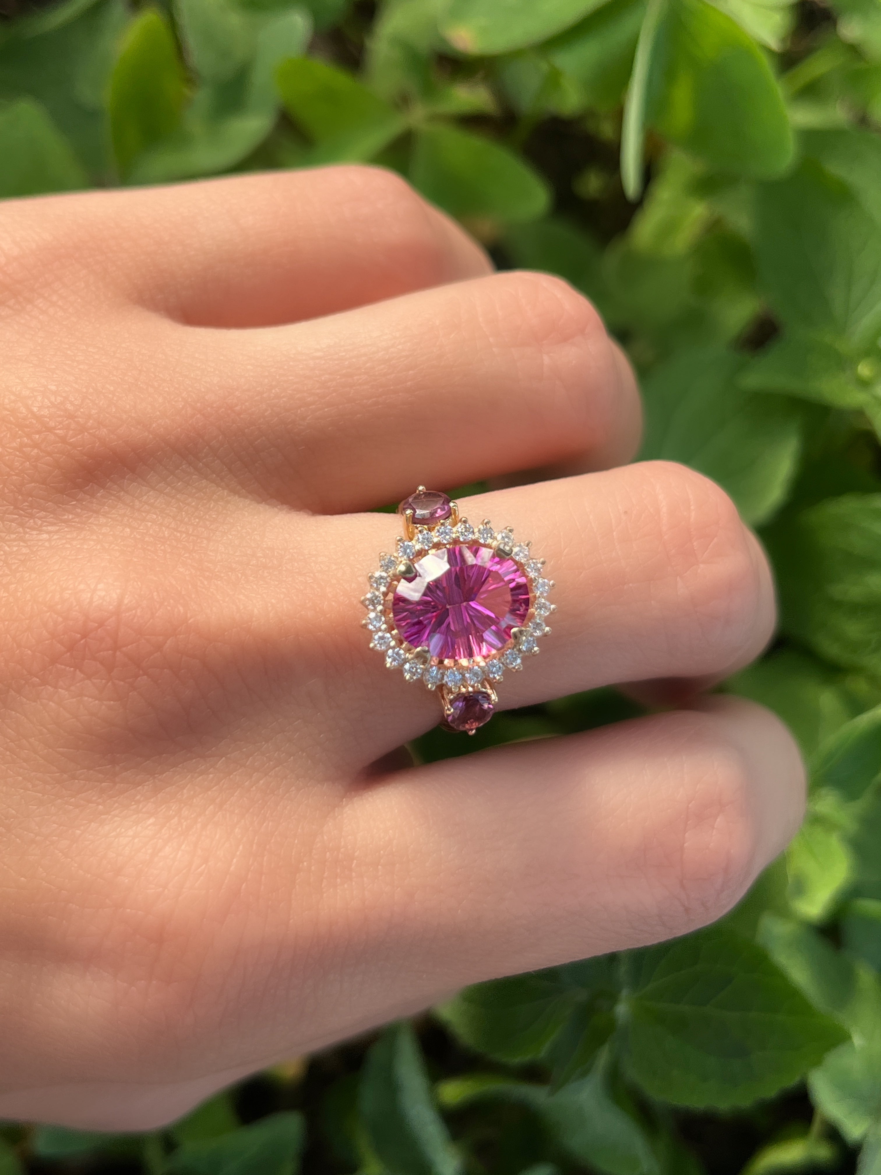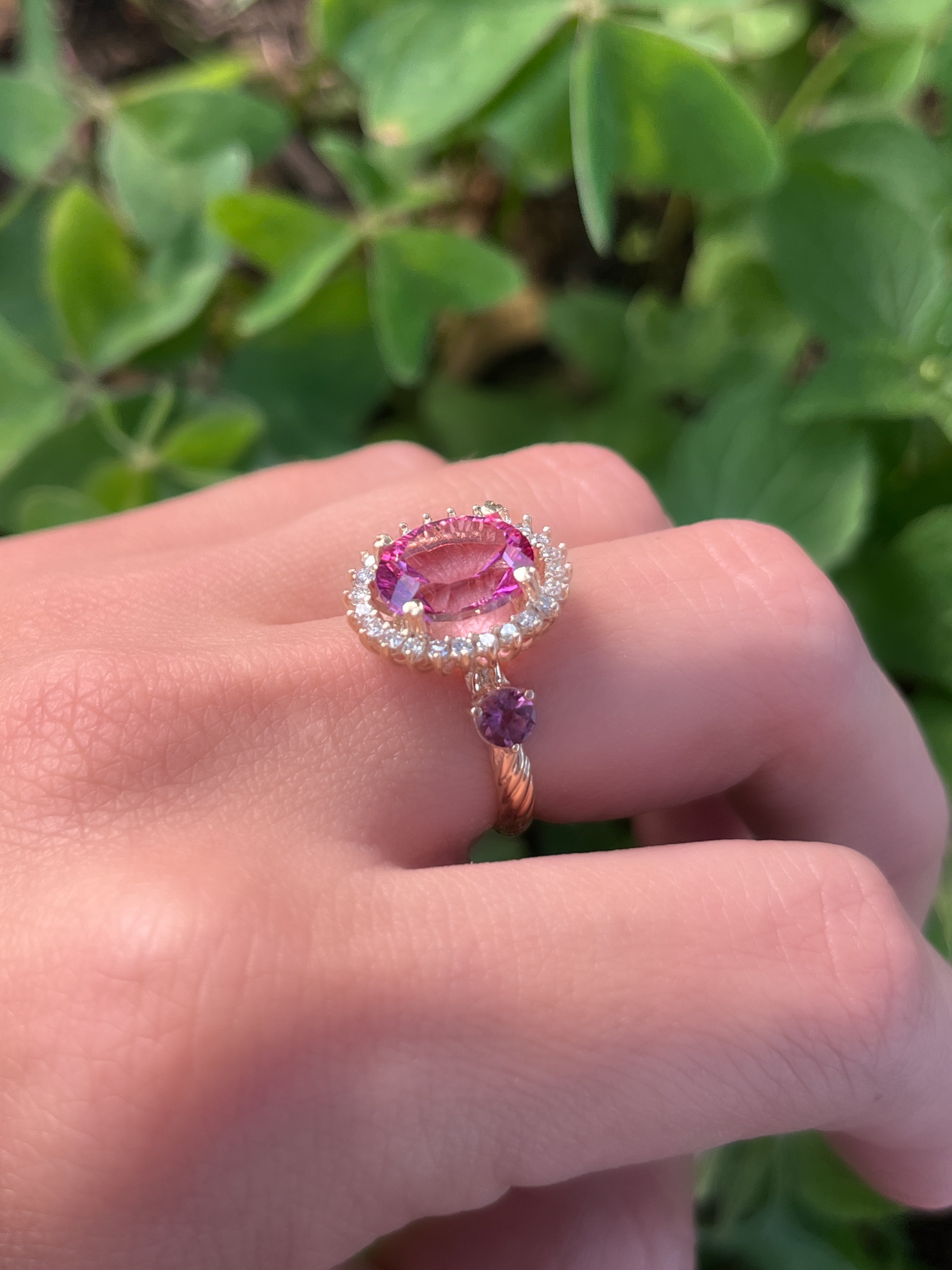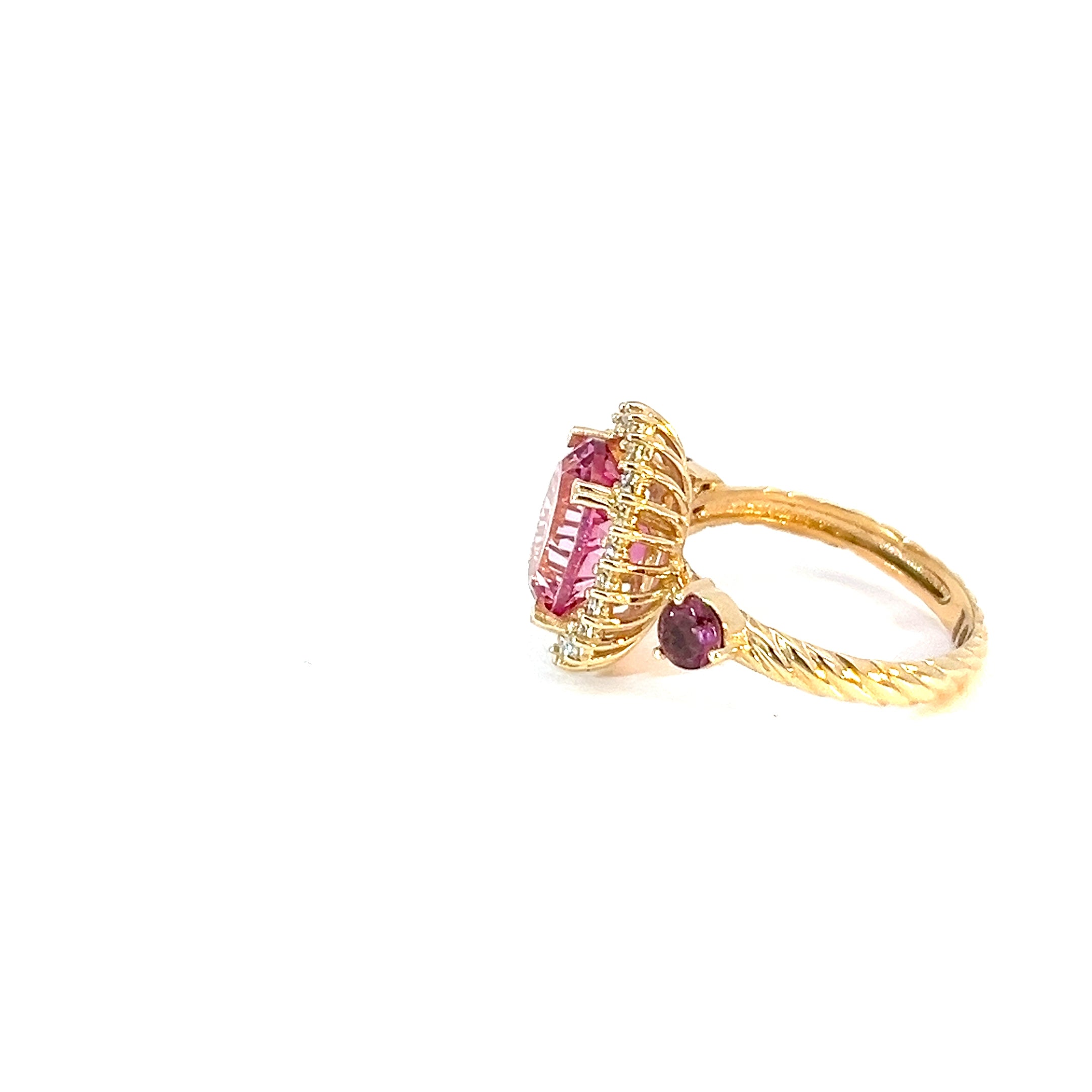 Anillo Antoniette Topacio rosado con turmalinas y diamantes
