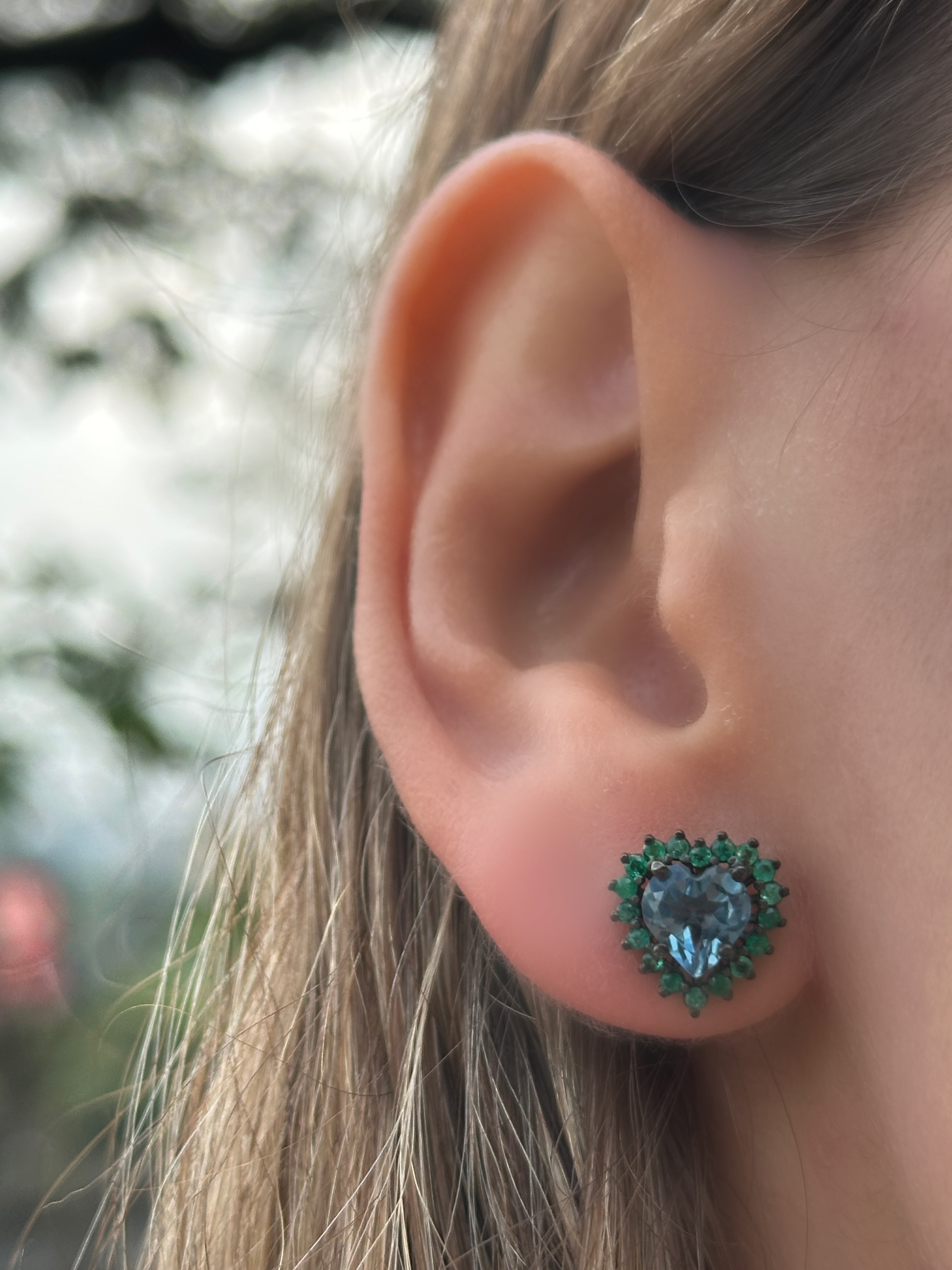Aretes Camelia topacio london blue y esmeraldas