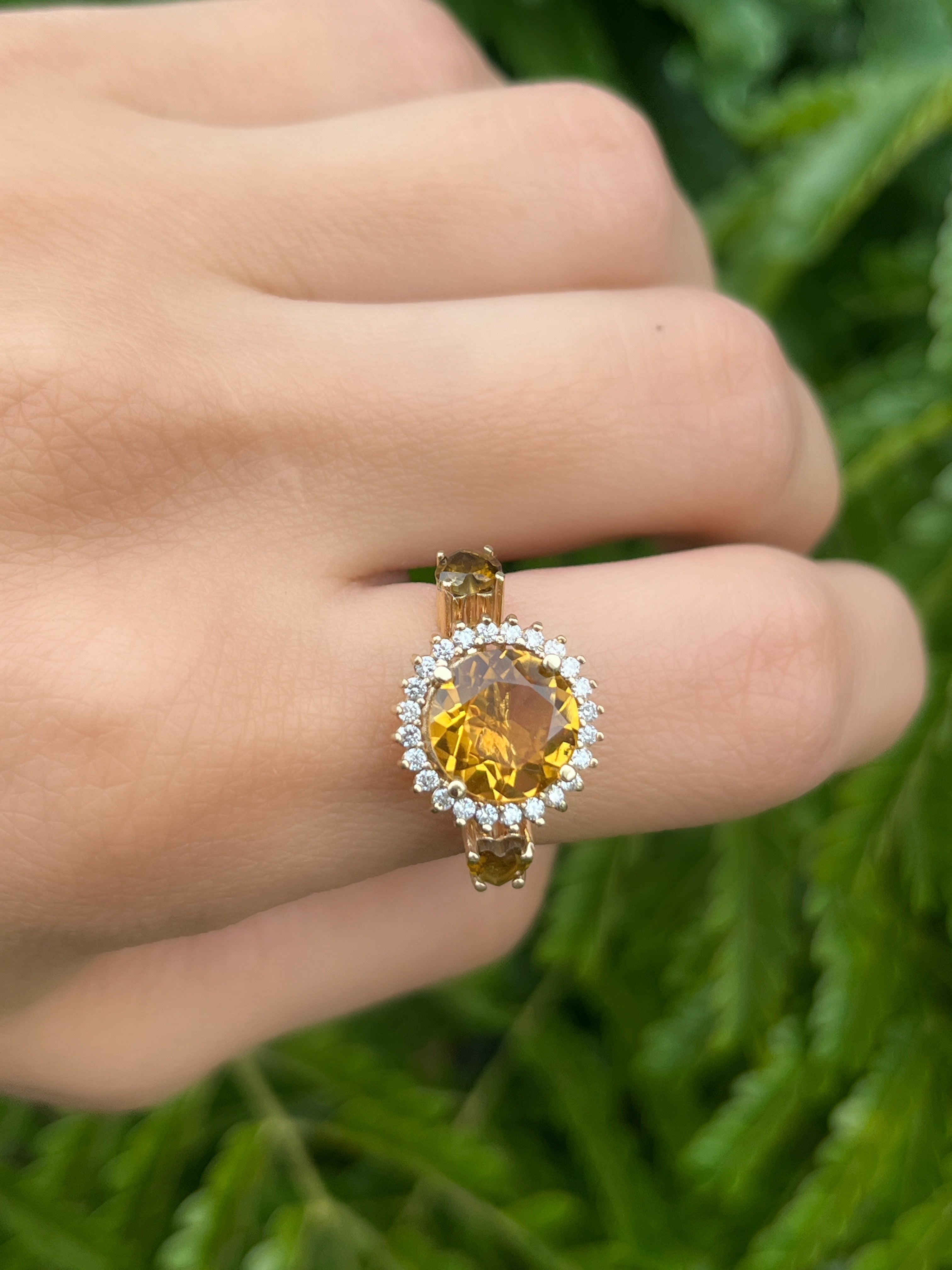 Anillo Cluster Citrinos y Diamantes