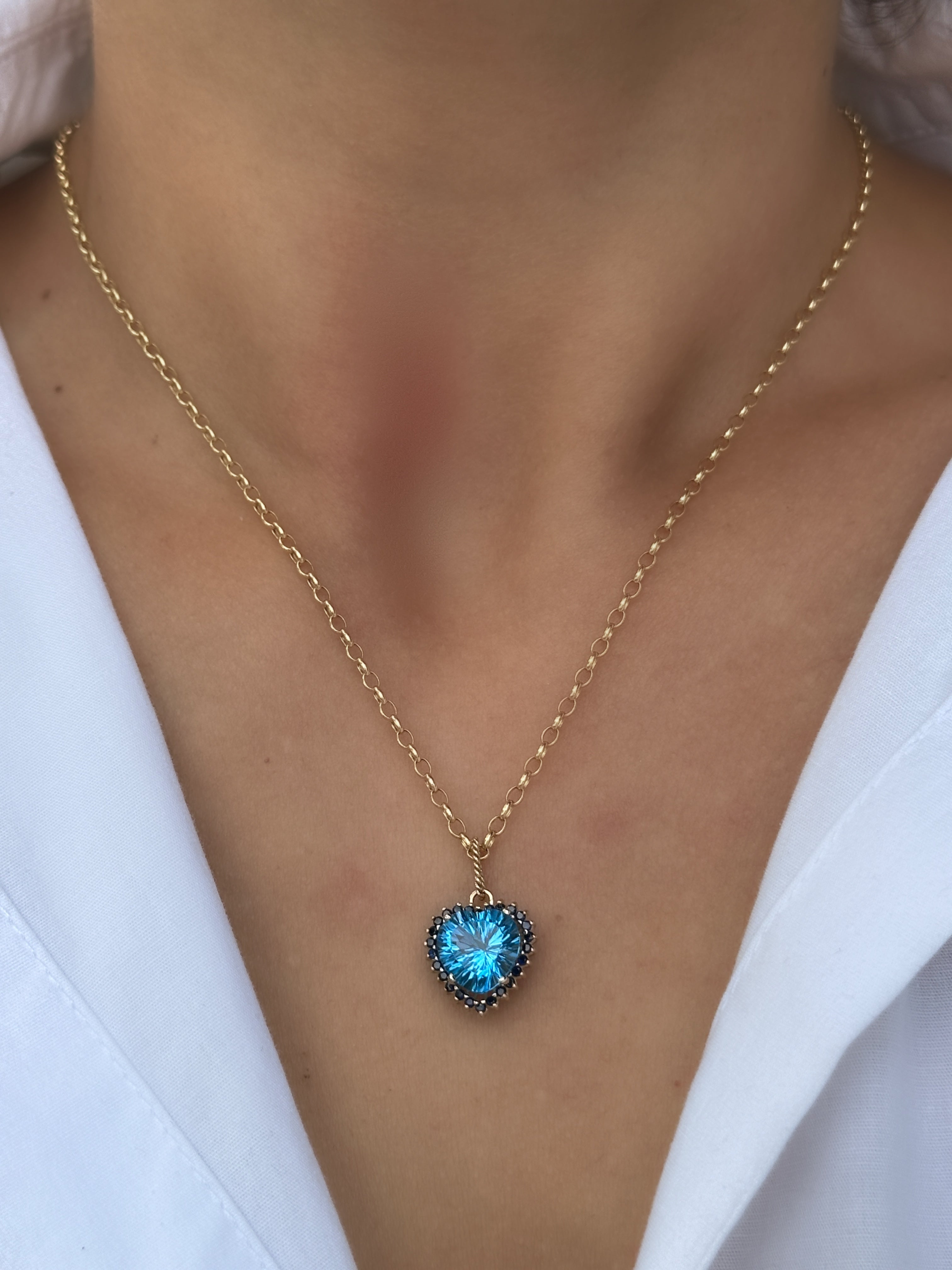 Dije Camelia topacio swiss blue con zafiros