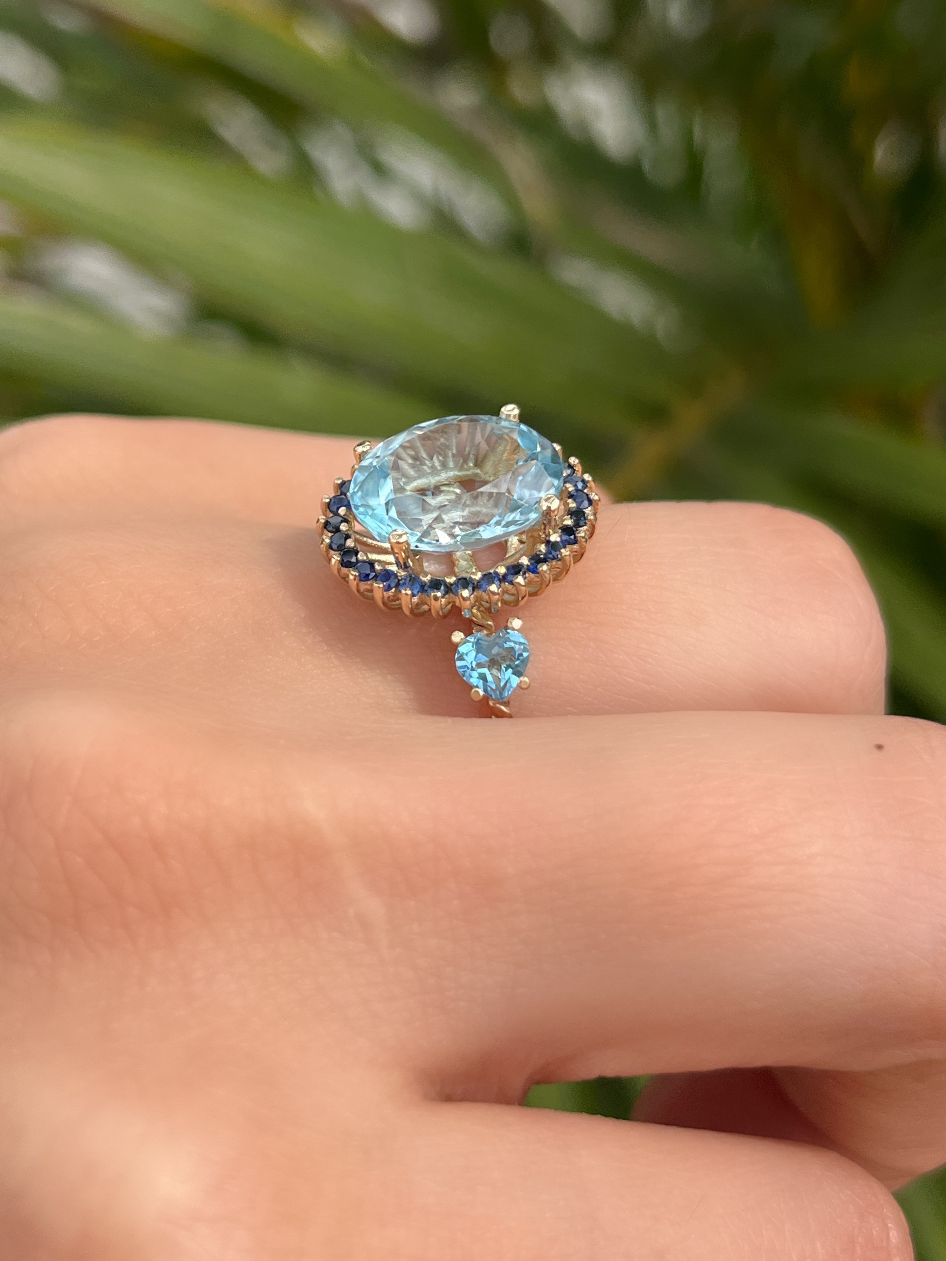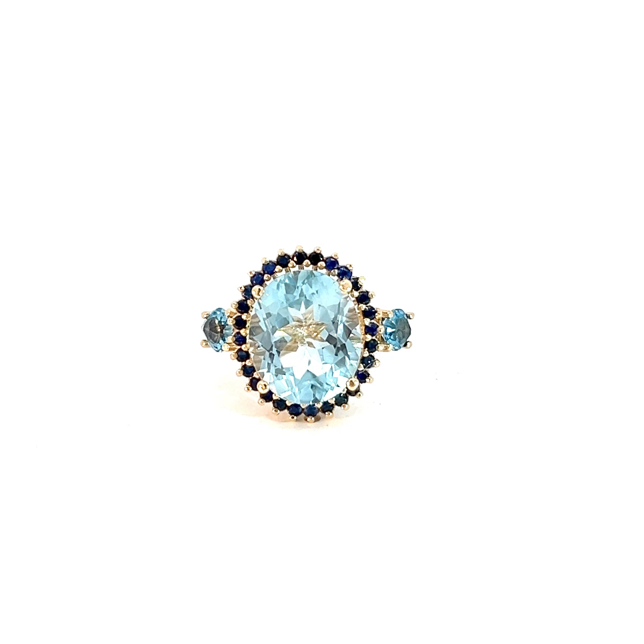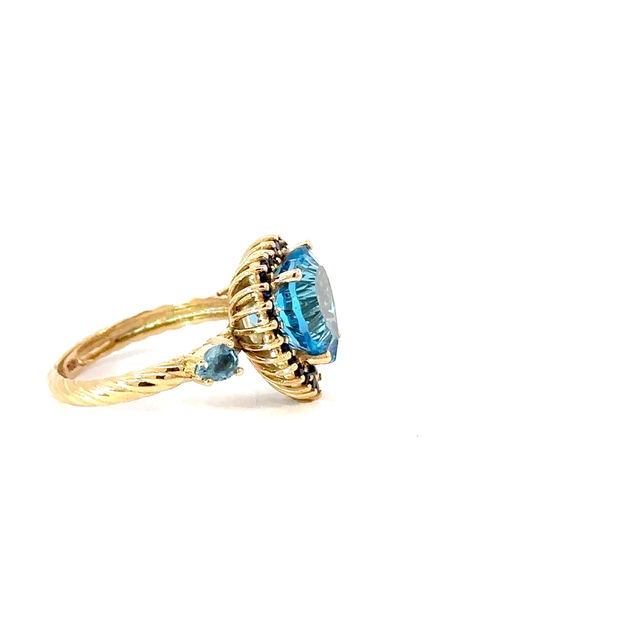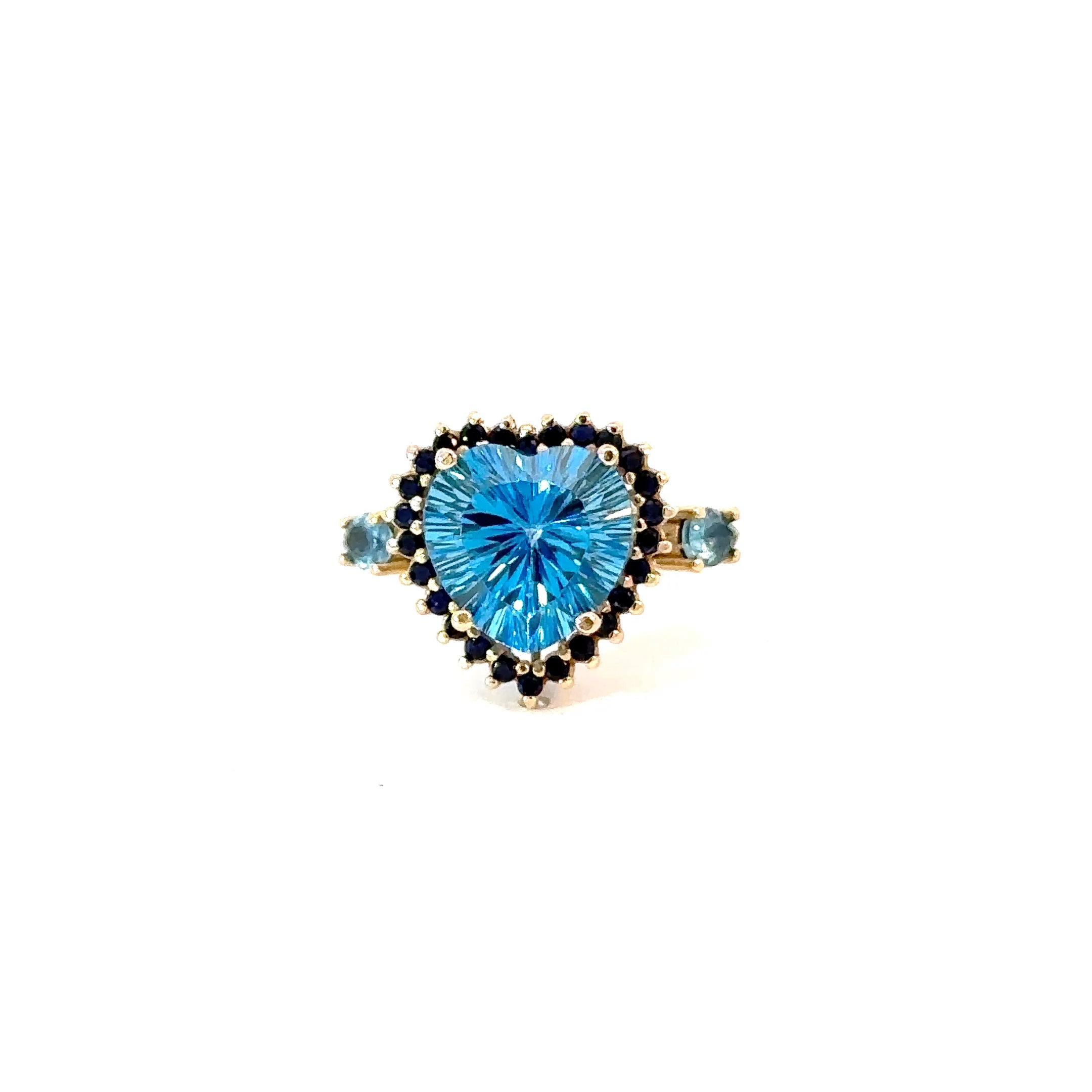 Anillo cluster topacio swiss blue y zafiros azules