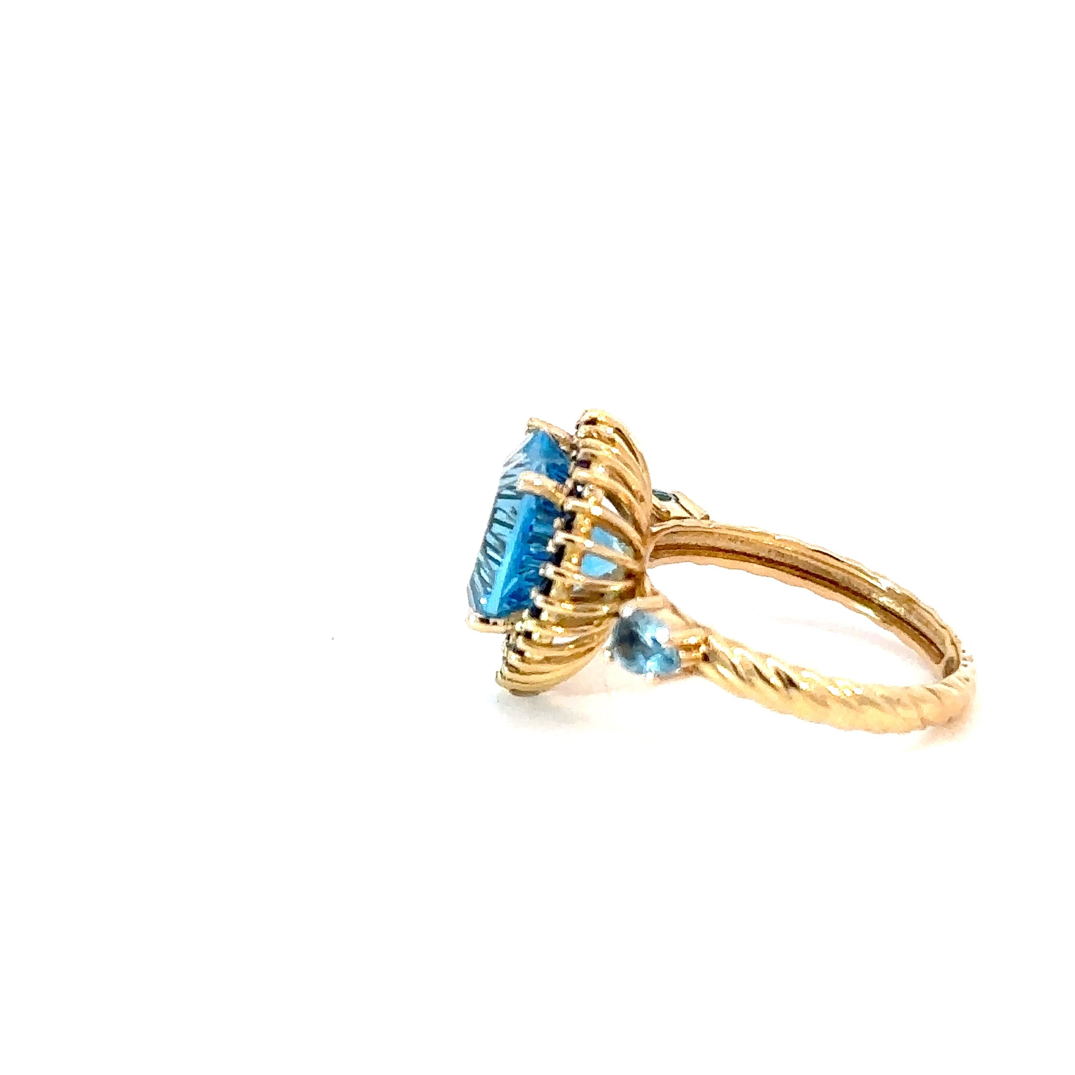Anillo topacio swiss blue cluster rodolitas