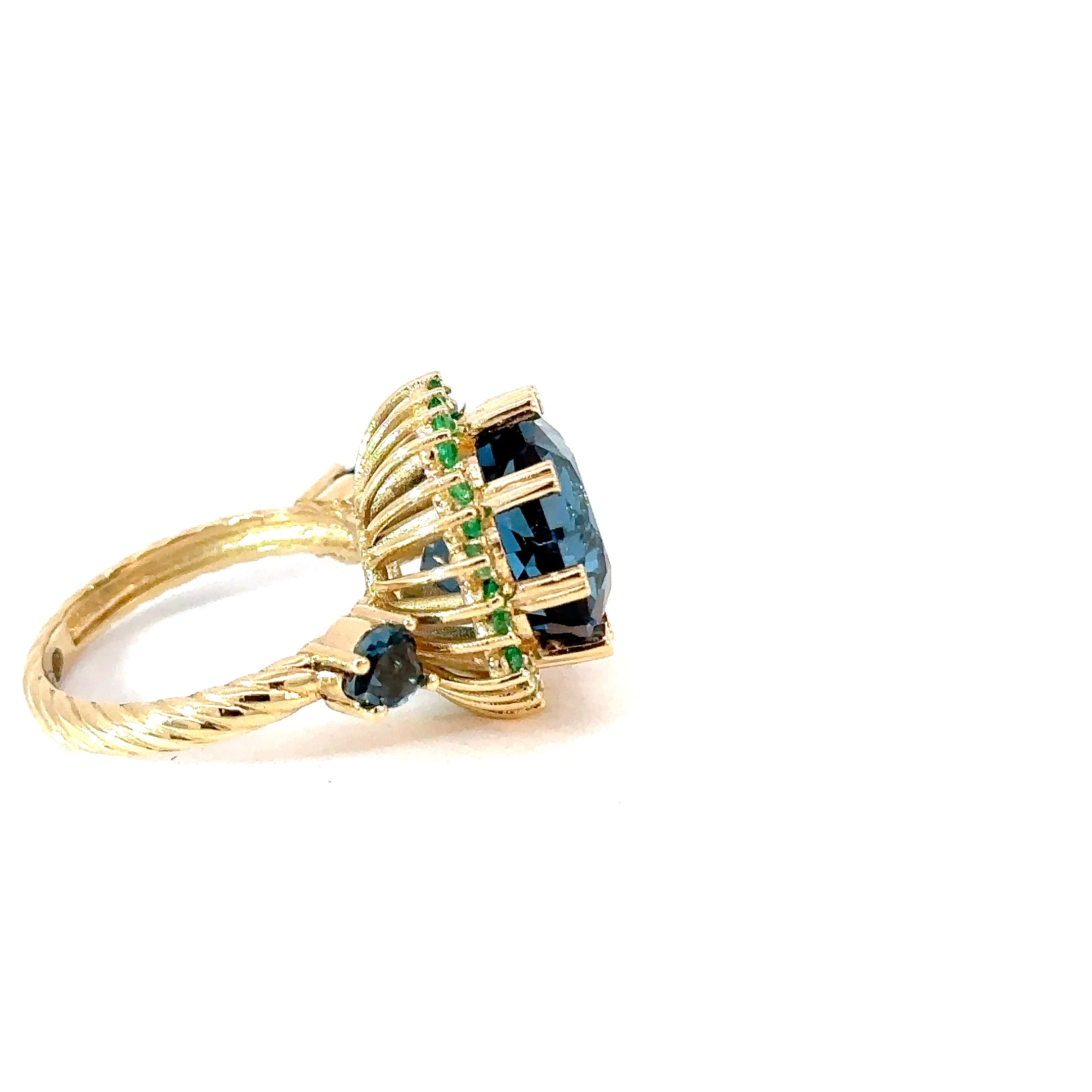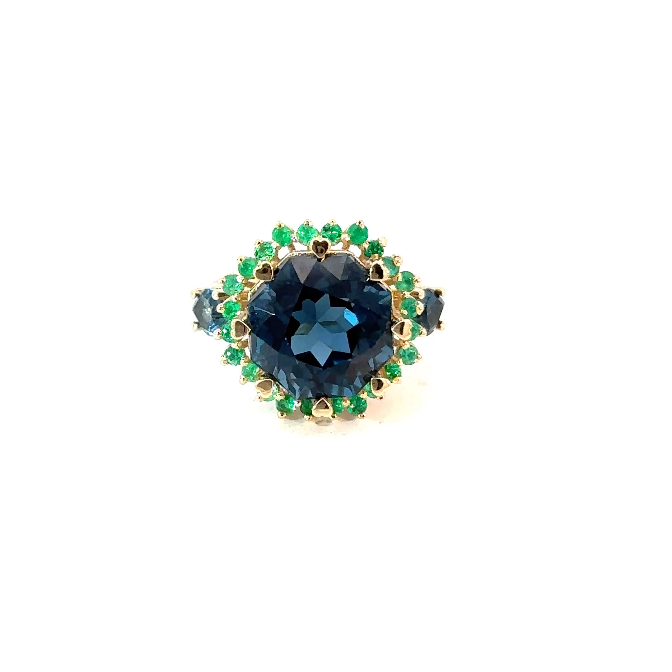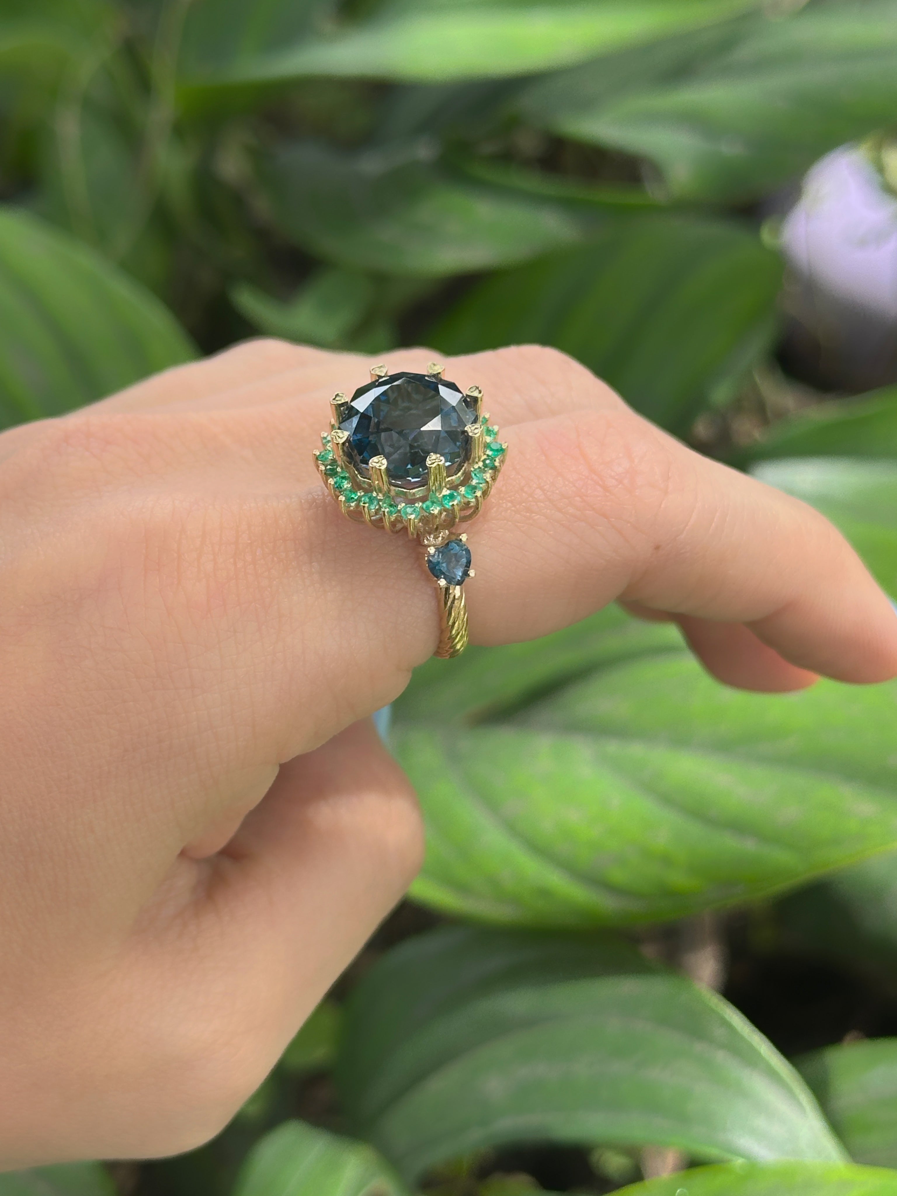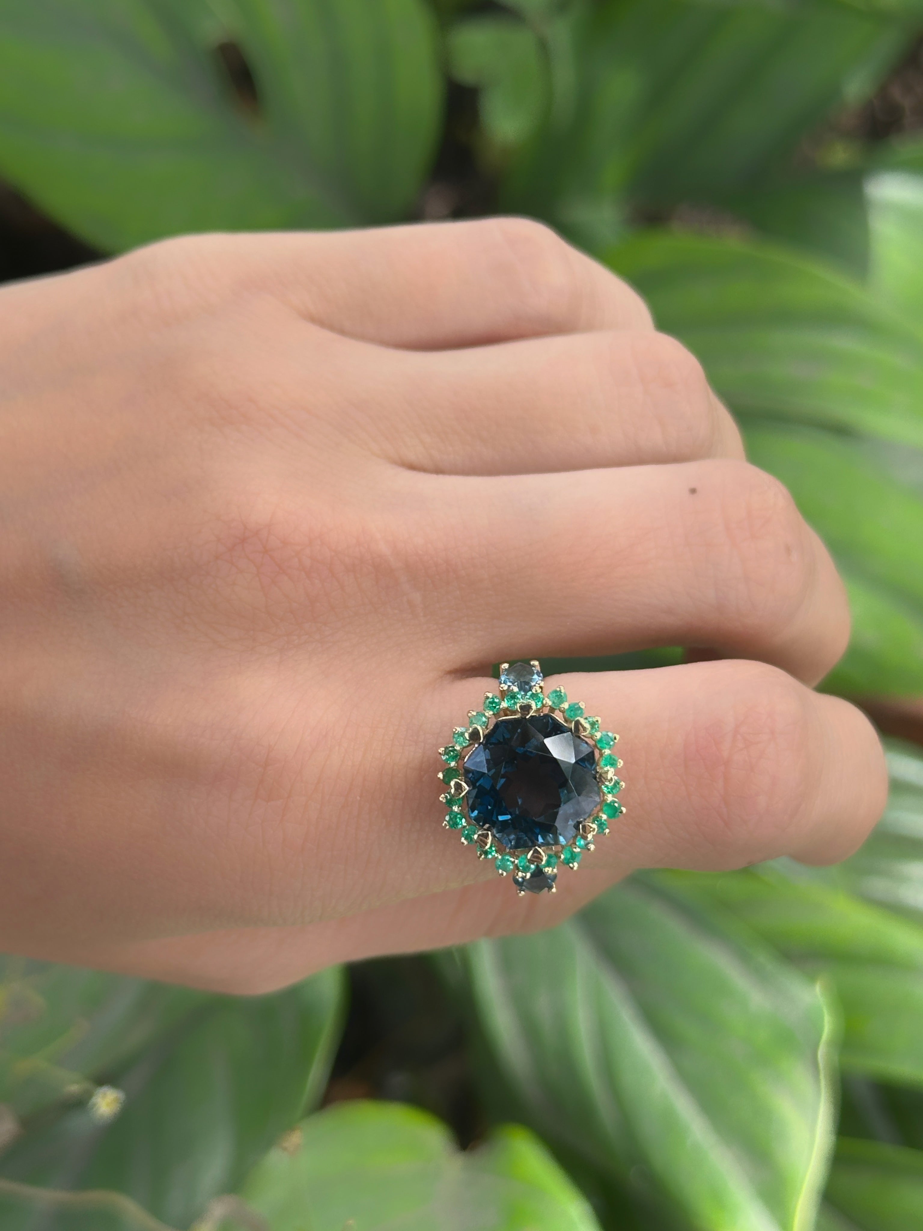Anillo Topacio london blue cluster Esmeraldas grande